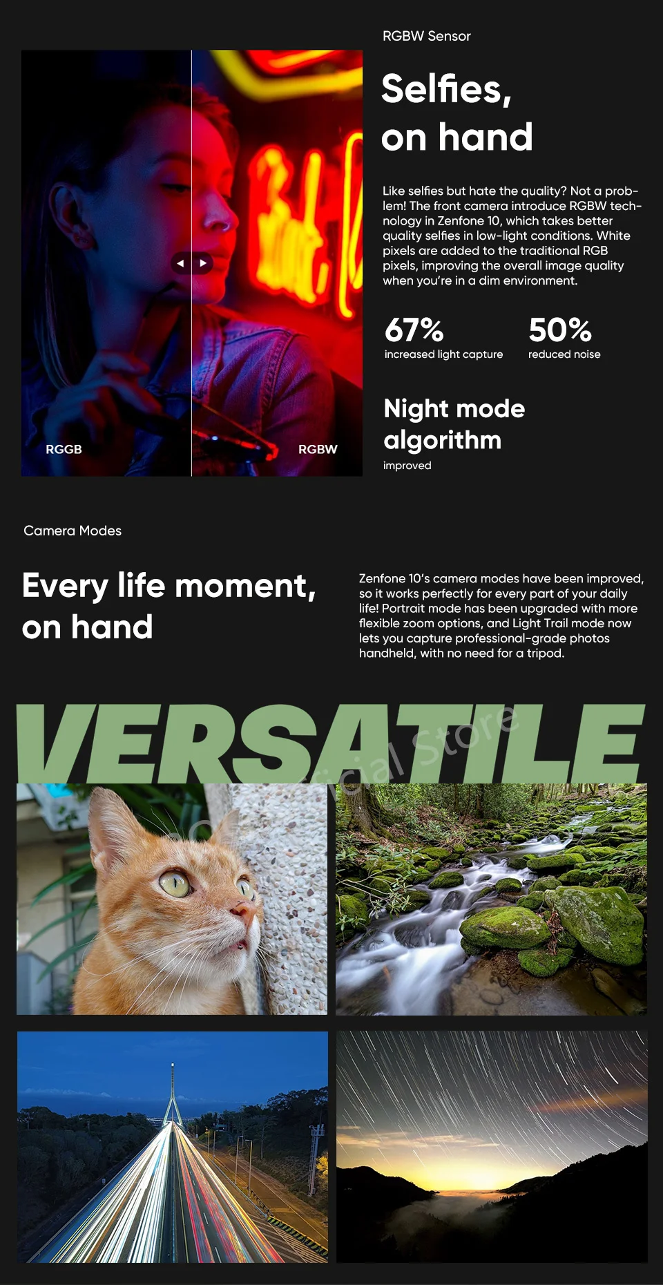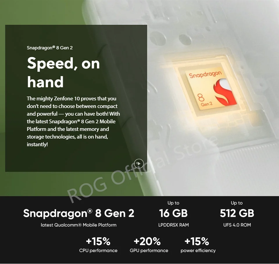 El poderoso ZenFone 10 demuestra que no necesitas elegir entre compacto y potente, ¡puedes tener ambos! Con la última plataforma móvil Snapdragon® 8 Gen 2 y las últimas tecnologías de memoria y almacenamiento, ¡todo a mano, al instante!