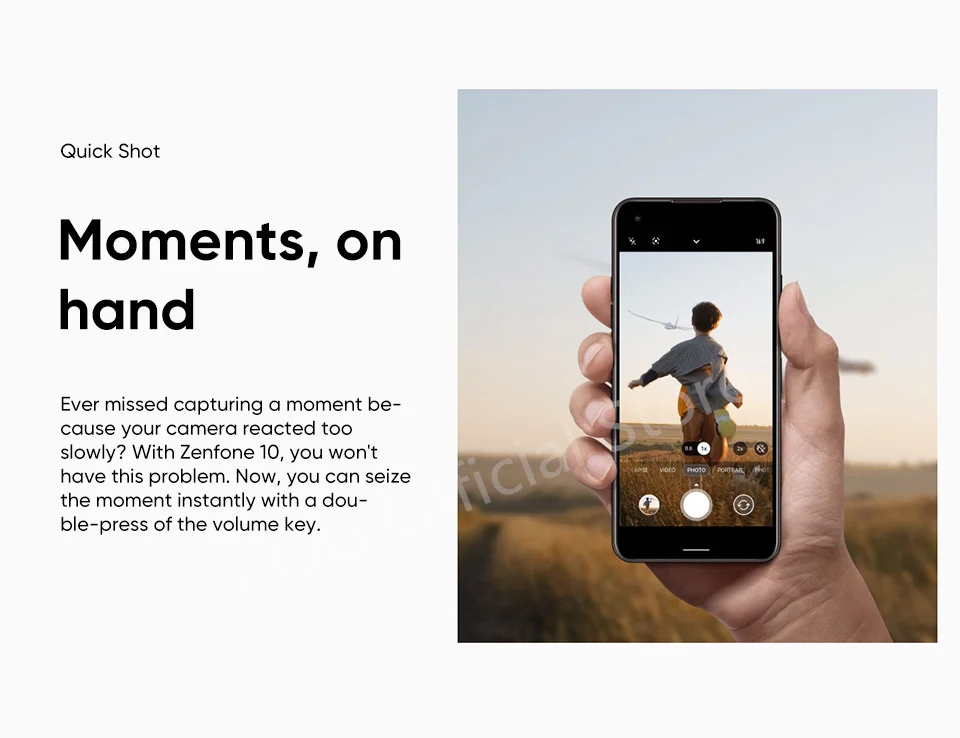 ¿Alguna vez se perdió un momento porque su cámara reaccionó demasiado lentamente? Con ZenFone 10, no tendrás este problema. Ahora, puede aprovechar el momento al instante con una doble pulsación de la tecla de volumen.