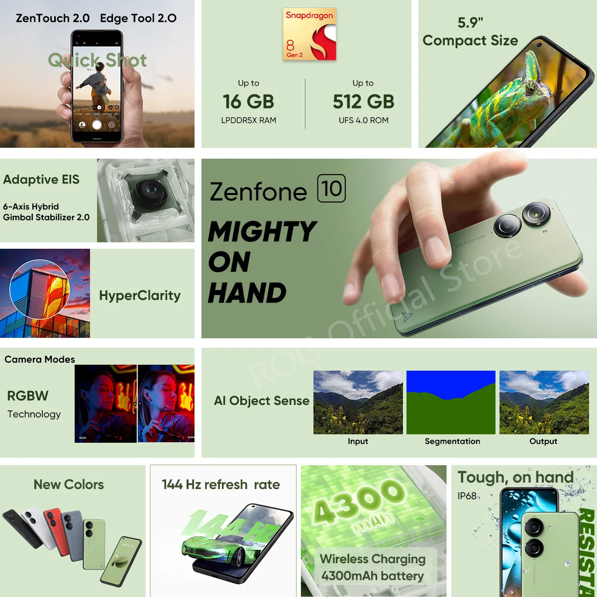 Comprar ASUS-Zenfone 10 5G, Snapdragon 8 Gen 2, Pantalla AMOLED de 2023 pulgadas, 5,9Hz, batería de 144 mAh, resistente al agua IP68, NFC, versión Global, novedad de 4300