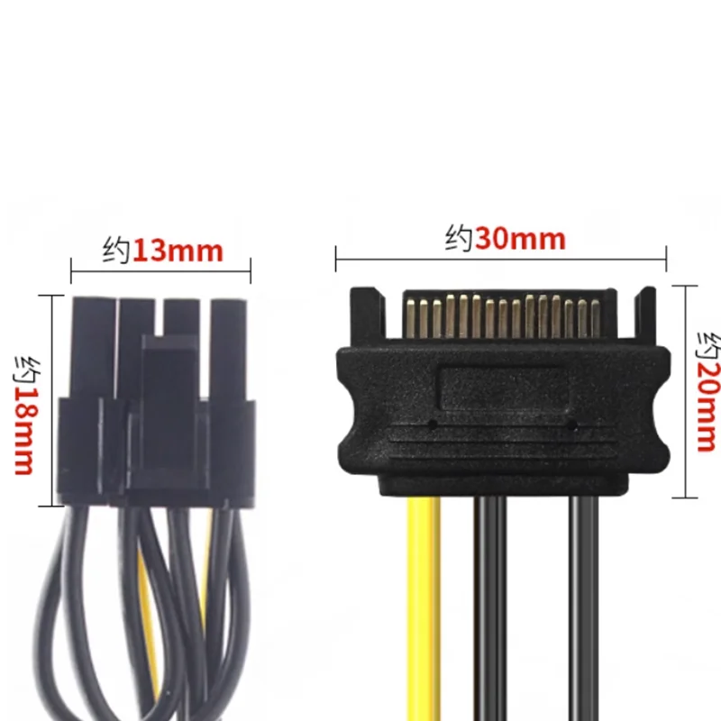 Comprar AT Dual 15Pin SATA macho a PCI-E PCIe PCI Tarjeta de visualización de Video gráfica 8 pines 18awg Cable PC DIY Cable de fuente de alimentación macho