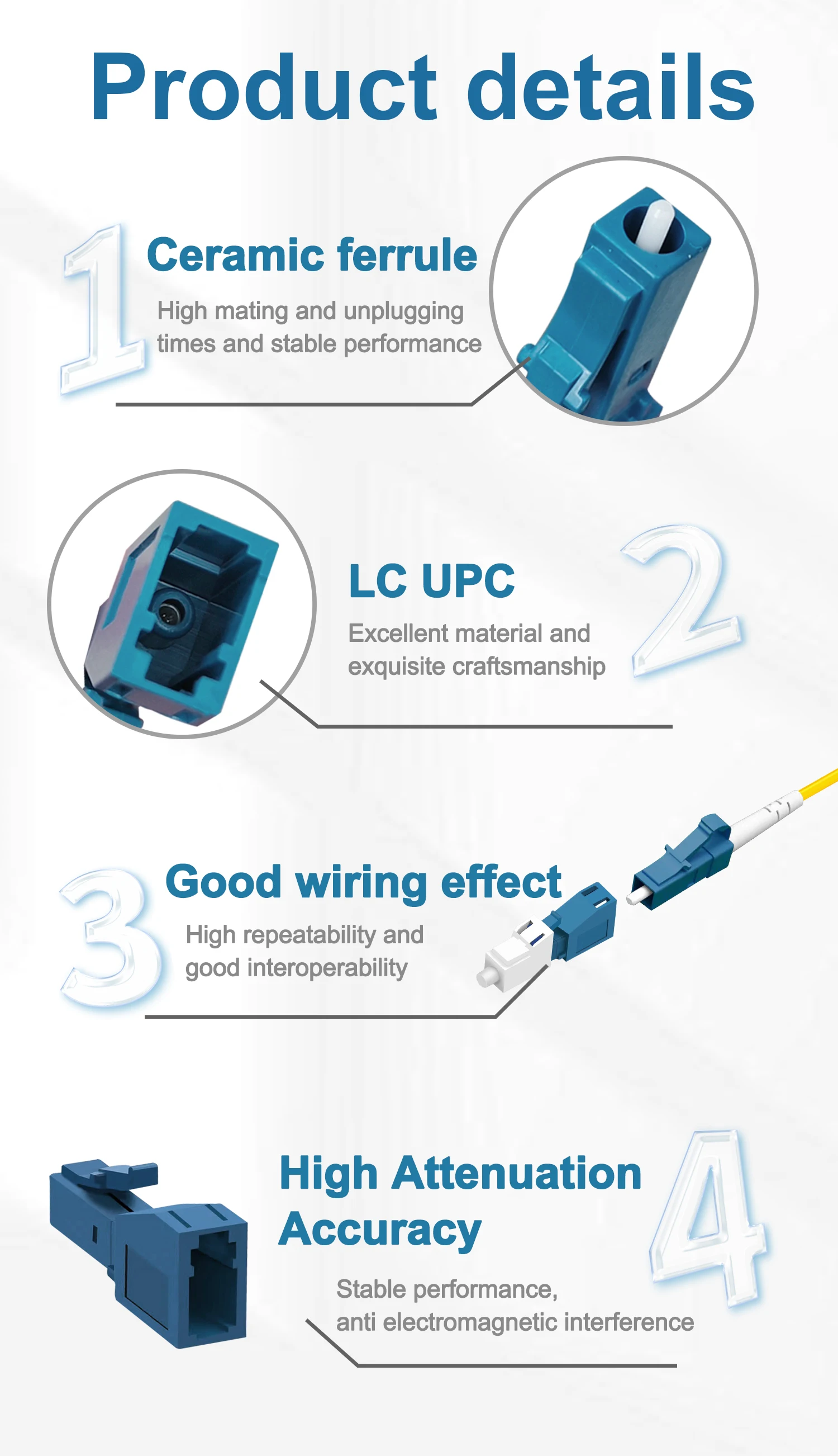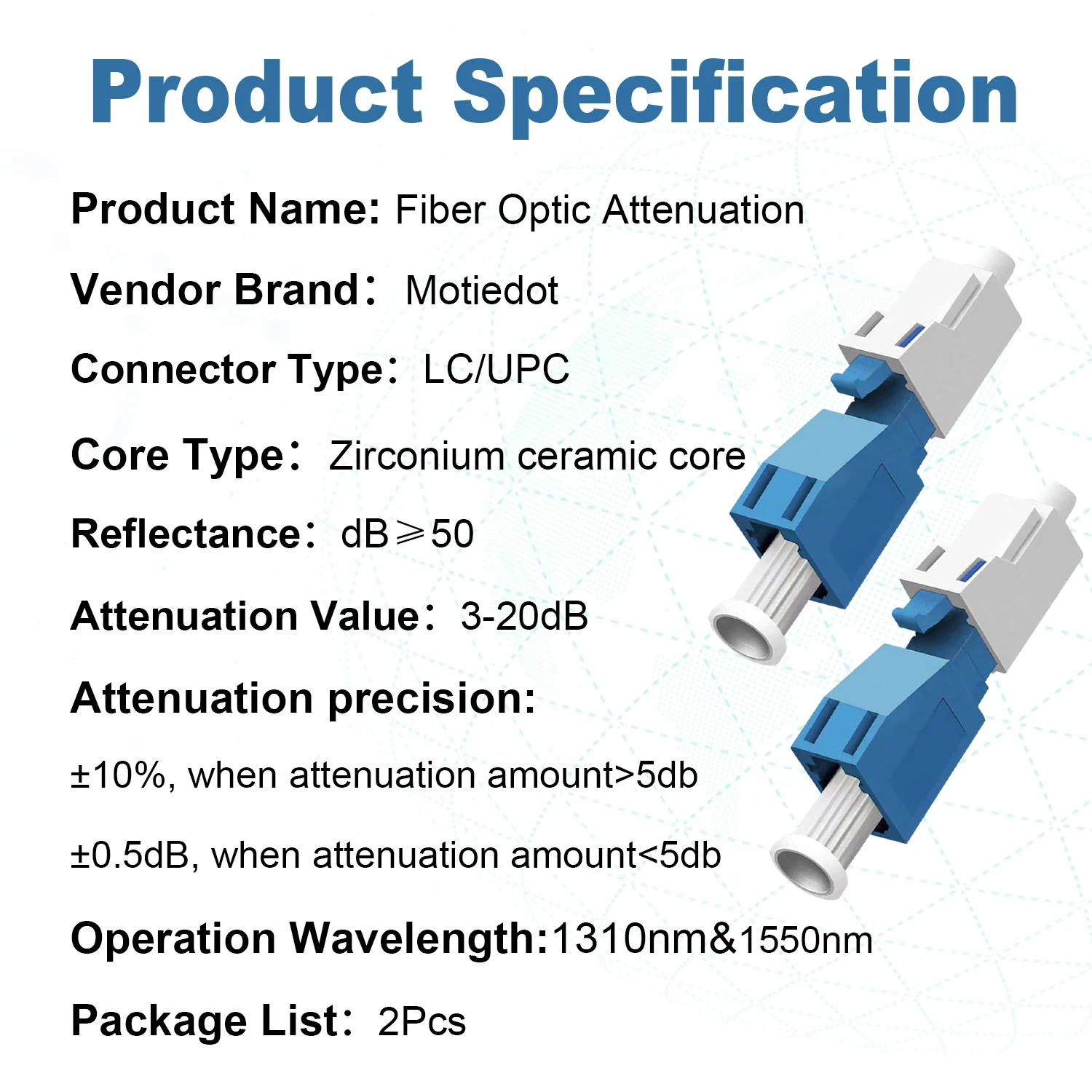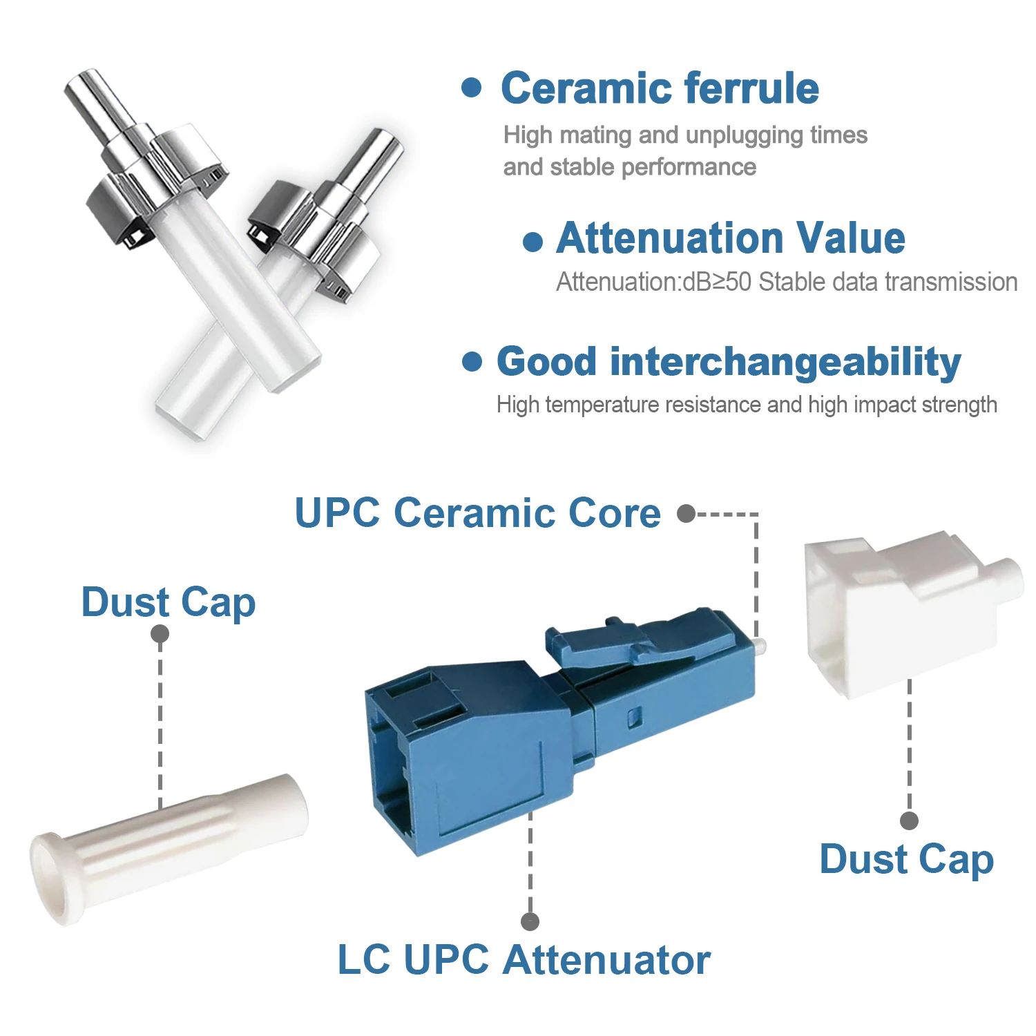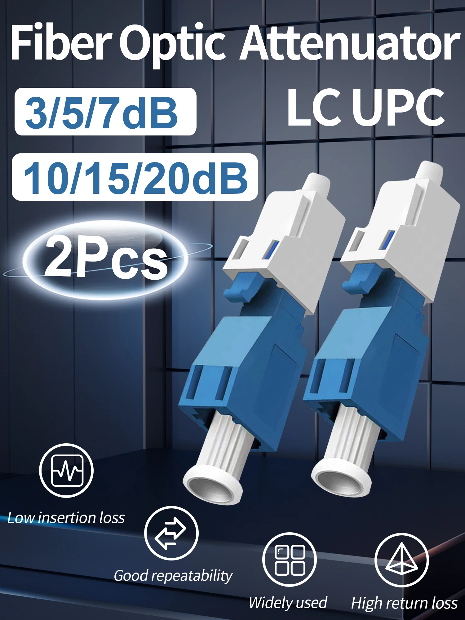 Comprar Atenuador de fibra óptica LC UPC, accesorio de modo único, inserto de conector FTTH, 2 piezas, hembra a macho, 3dB, 5dB, 7dB, 10dB, 15dB, 20dB