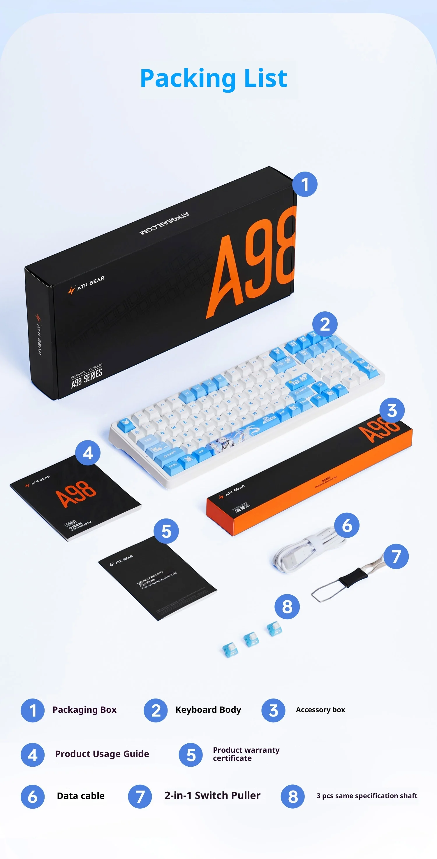 ATK A98 PRO Teclado mecánico inalámbrico 98% diseño Bluetooth 2,4G con cable ergonomía personalizado E-sport Gaming teclado de oficina regalos
