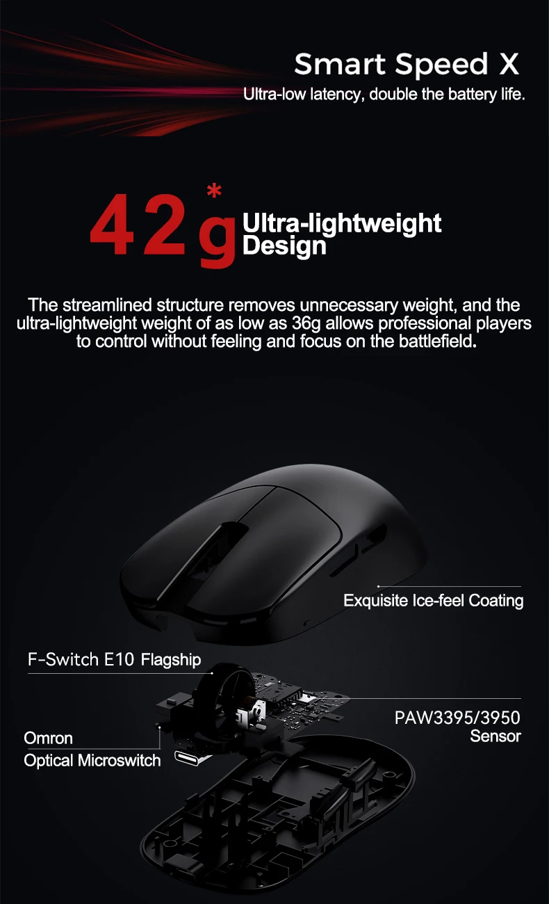 Comprar ATK VXE MAD R/R MAJOR Ratón inalámbrico para juegos de deportes electrónicos Ratones ergonómicos ultraligeros de modo dual PAW3395/3950 Estándar 8K