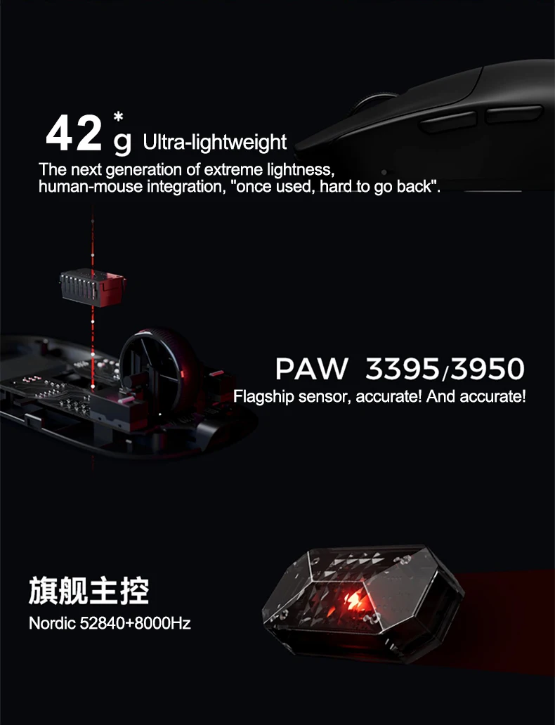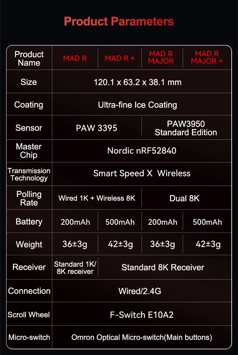 *El rango de peso es de 36 ± 3 g.Los distintos accesorios del ratón se producen en masa mediante moldeo por inyección.Existen diferencias de peso en los diferentes colores de la pulverización real.Existe un pequeño rango de tolerancia a la pulverización, lo cual es normal;