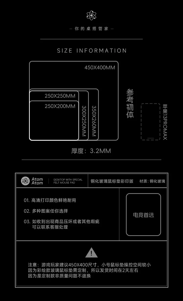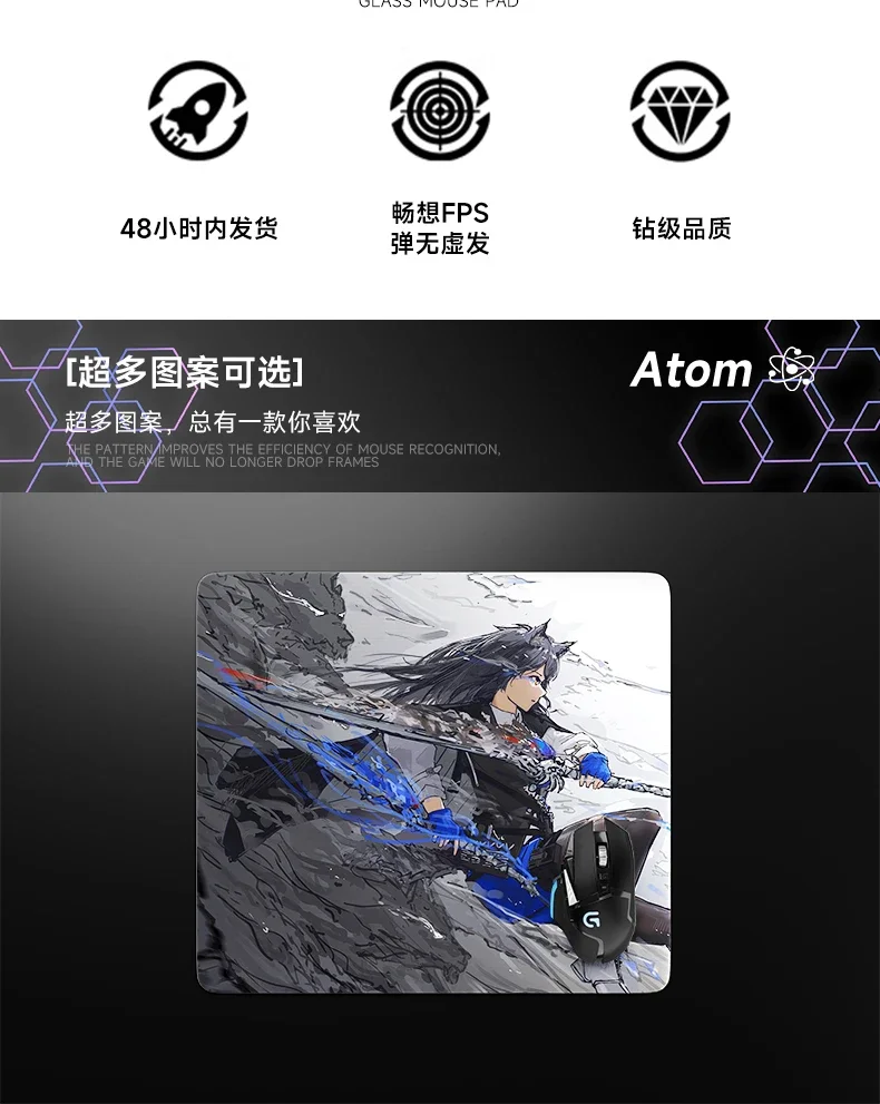 ATOM AT1636 alfombrilla de ratón de vidrio fotovoltaico templado actualización suave FPS Esports juego Anime alfombrilla de ratón accesorios de escritorio de oficina