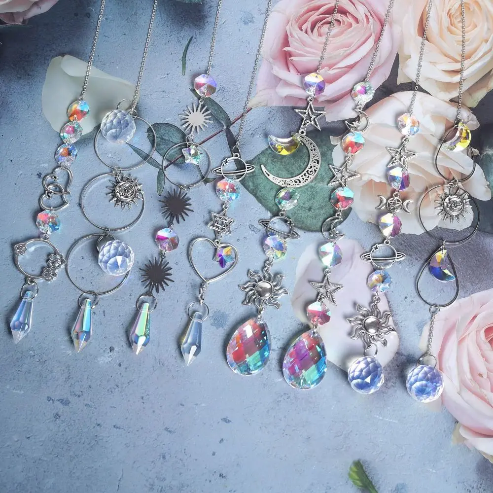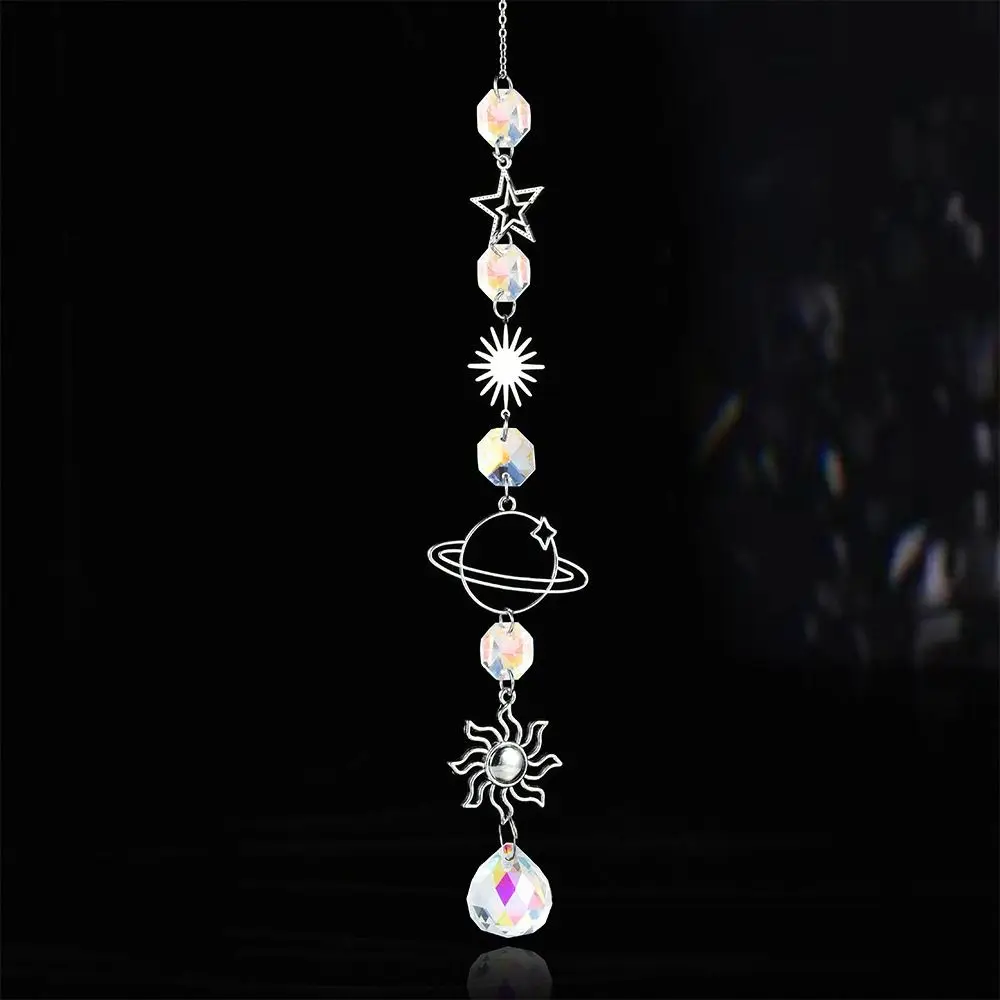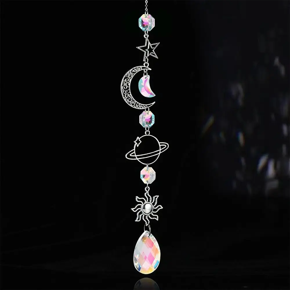 Comprar Atrapasueños colgante de cristal para decoración del hogar, carillón de viento con prismas, Luna, Planeta, arcoíris, regalo para el jardín
