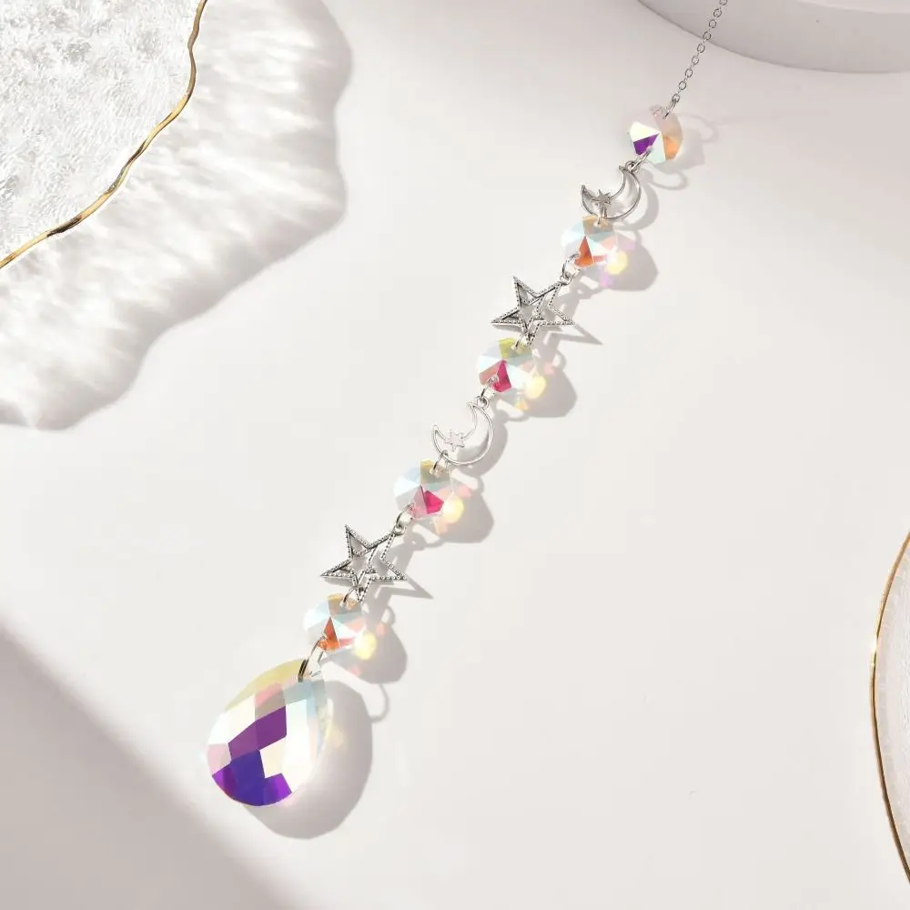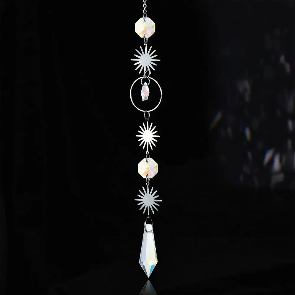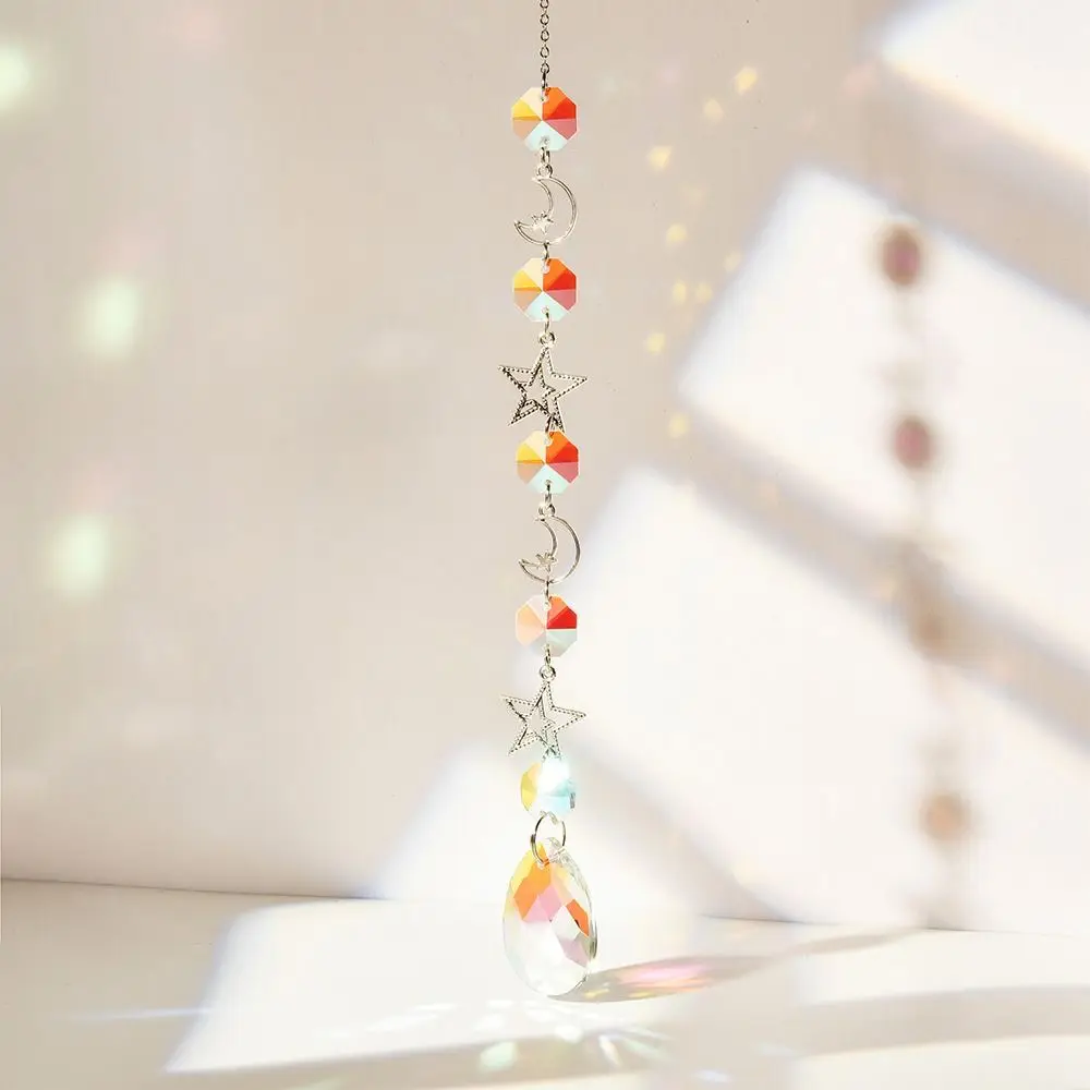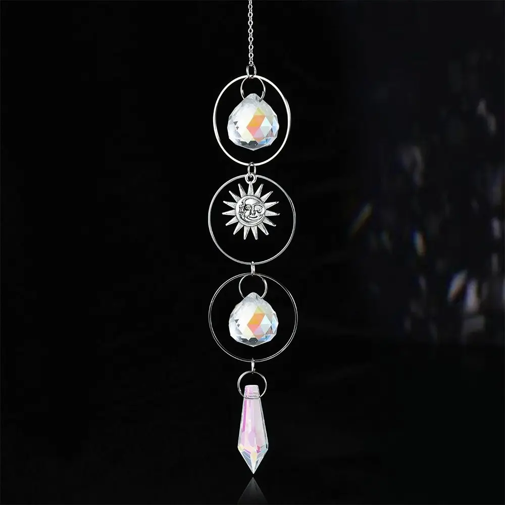 Comprar Atrapasueños colgante de cristal para decoración del hogar, carillón de viento con prismas, Luna, Planeta, arcoíris, regalo para el jardín