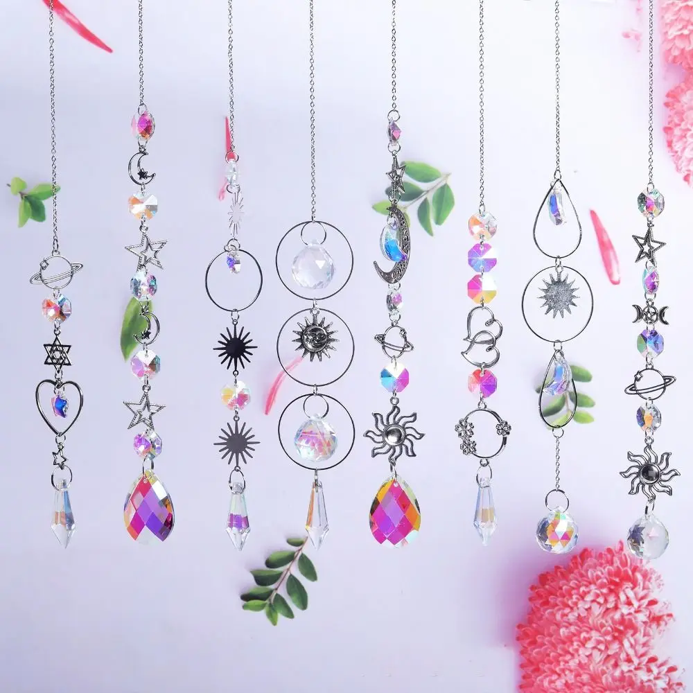 Comprar Atrapasueños colgante de cristal para decoración del hogar, carillón de viento con prismas, Luna, Planeta, arcoíris, regalo para el jardín