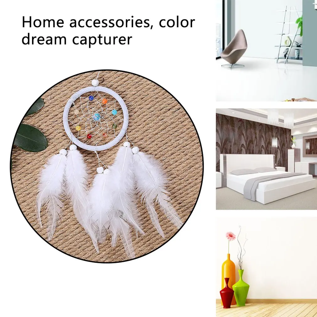 Atrapasueños de colores-las pesadillas pasan por los agujeros y salen de la ventana; Los buenos sueños están atrapados en la tela, desliza las plumas hacia abajo para que la persona duerma.