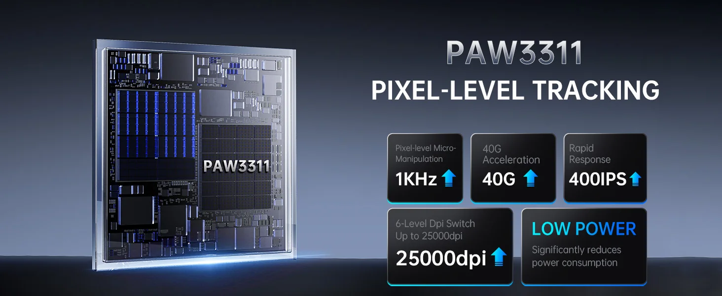 El mouse para juegos G3PRO está equipado con el sensor insignia PixArt 3311, que ofrece un DPI de hasta 25.000 y 6 niveles de DPI ajustables.Ya sea para el trabajo diario o para juegos profesionales, el G3PRO satisface sin esfuerzo todas sus necesidades.