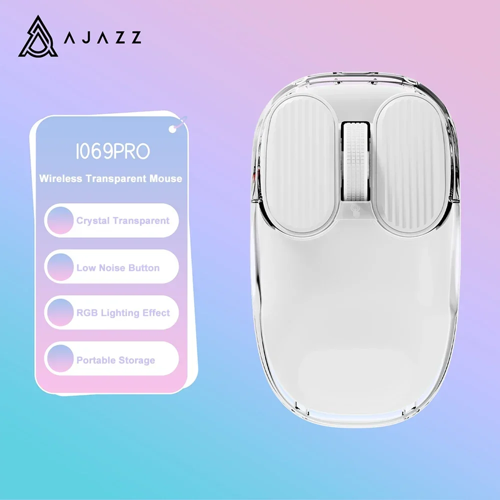 ATTACK SHARK X AJAZZ I069 PRO Kawaii ratón inalámbrico silencioso retroiluminación RGB 1600DP ratón para juegos transparente recargable