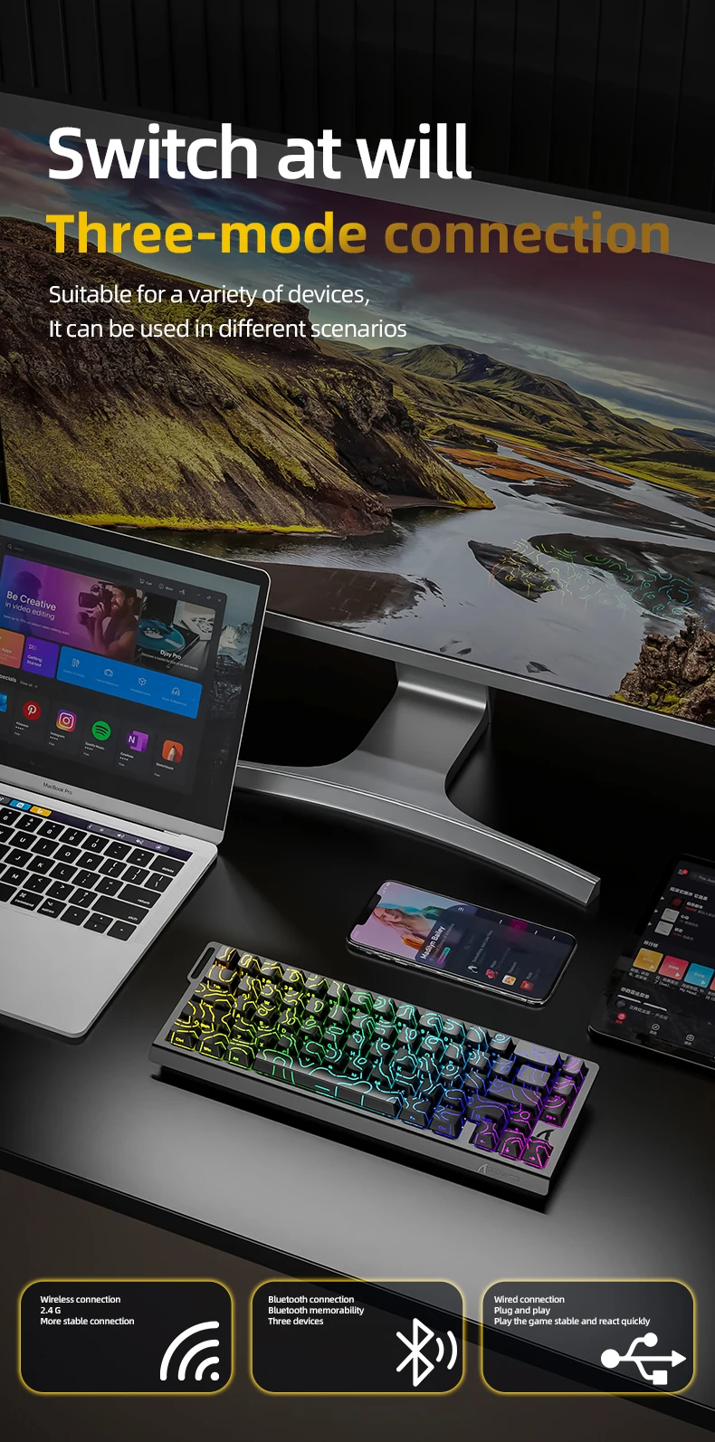 --1.Conexión inalámbrica de tres modos, teclado para juegos profesional exclusivo con interruptor magnético inalámbrico.