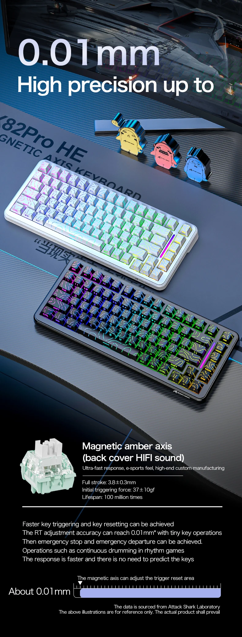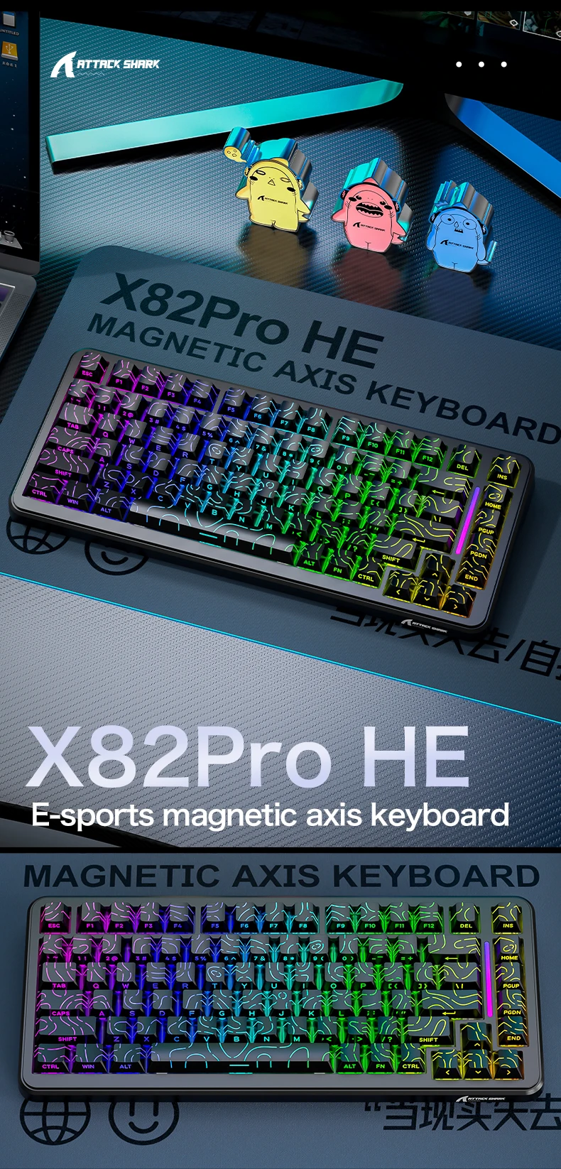 Las primeras teclas ATTACK SHARK versión cómica y teclas PBT con estampado lateral de onda magnética