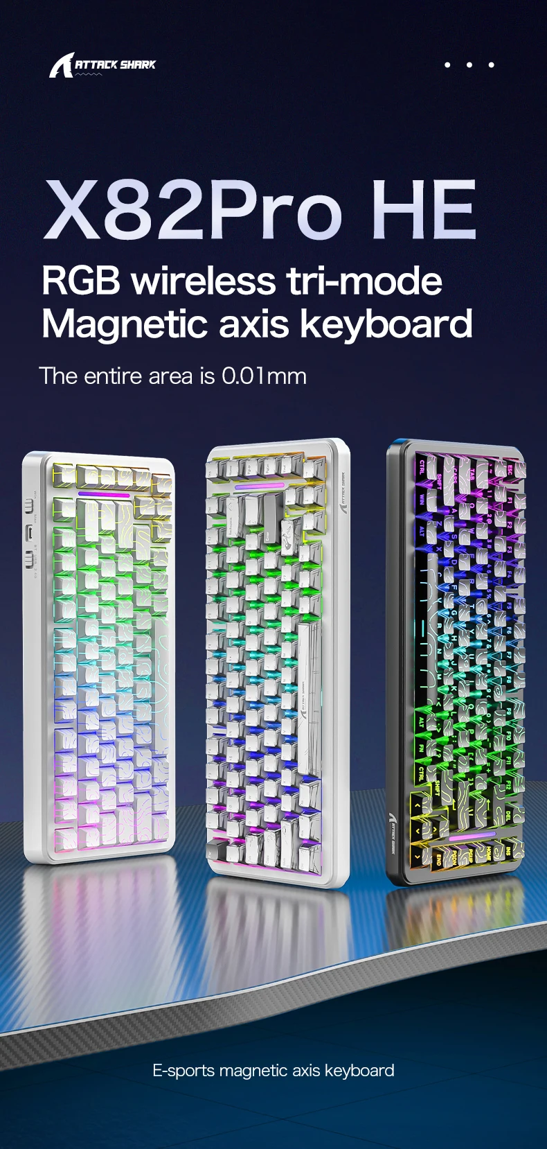 Comprar ATTACK SHARK X82PRO HE 75% Teclado magnético inalámbrico para juegos con activación ajustable de disparador rápido de 0,01 mm, 8 Khz, intercambiable en caliente, RGB
