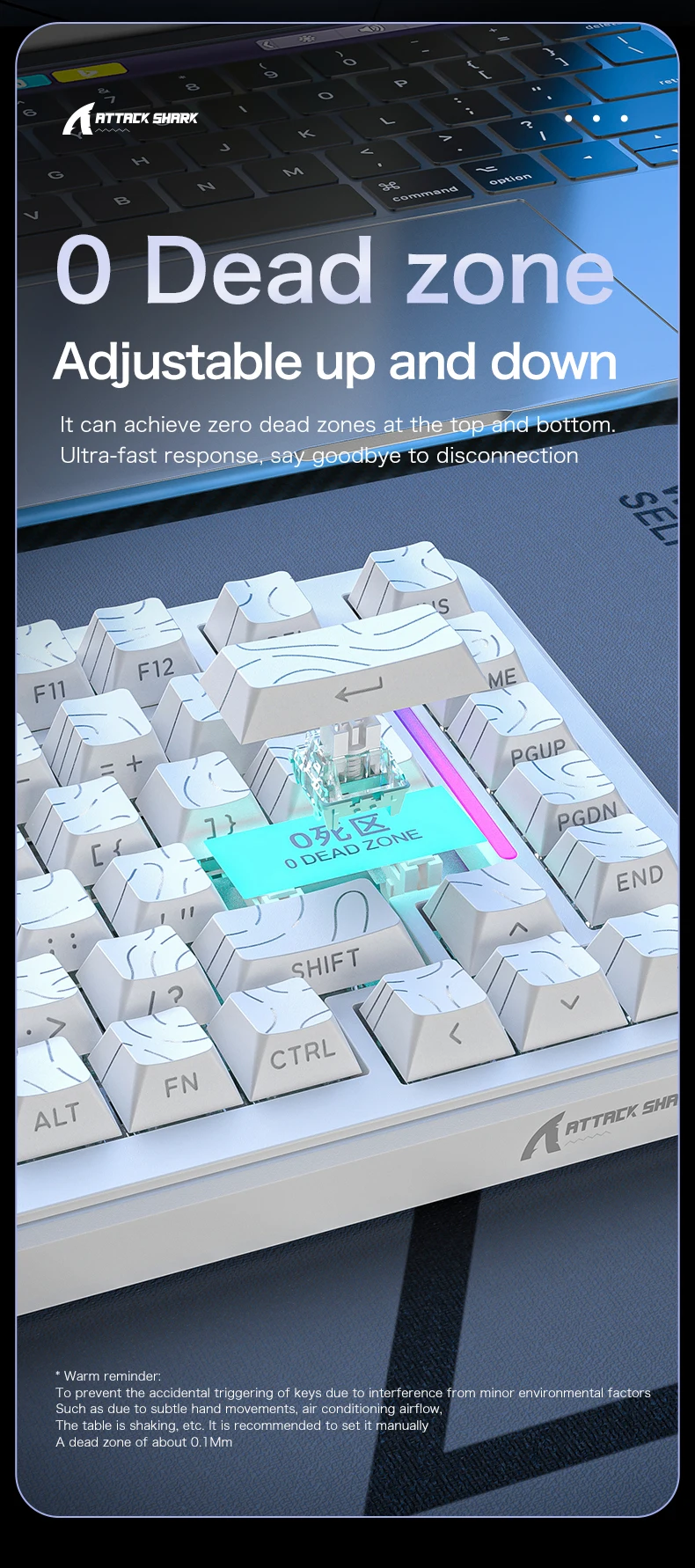 El X82PRO HE cuenta con interruptores magnéticos de alta precisión con un punto de accionamiento ultrasensible de 0,01 mm, lo que garantiza una respuesta de tecla instantánea.En el modo de disparo rápido, las teclas se reinician rápidamente, lo que las hace perfectas para FPS, MOBA y juegos competitivos, cada pulsación de tecla es precisa.