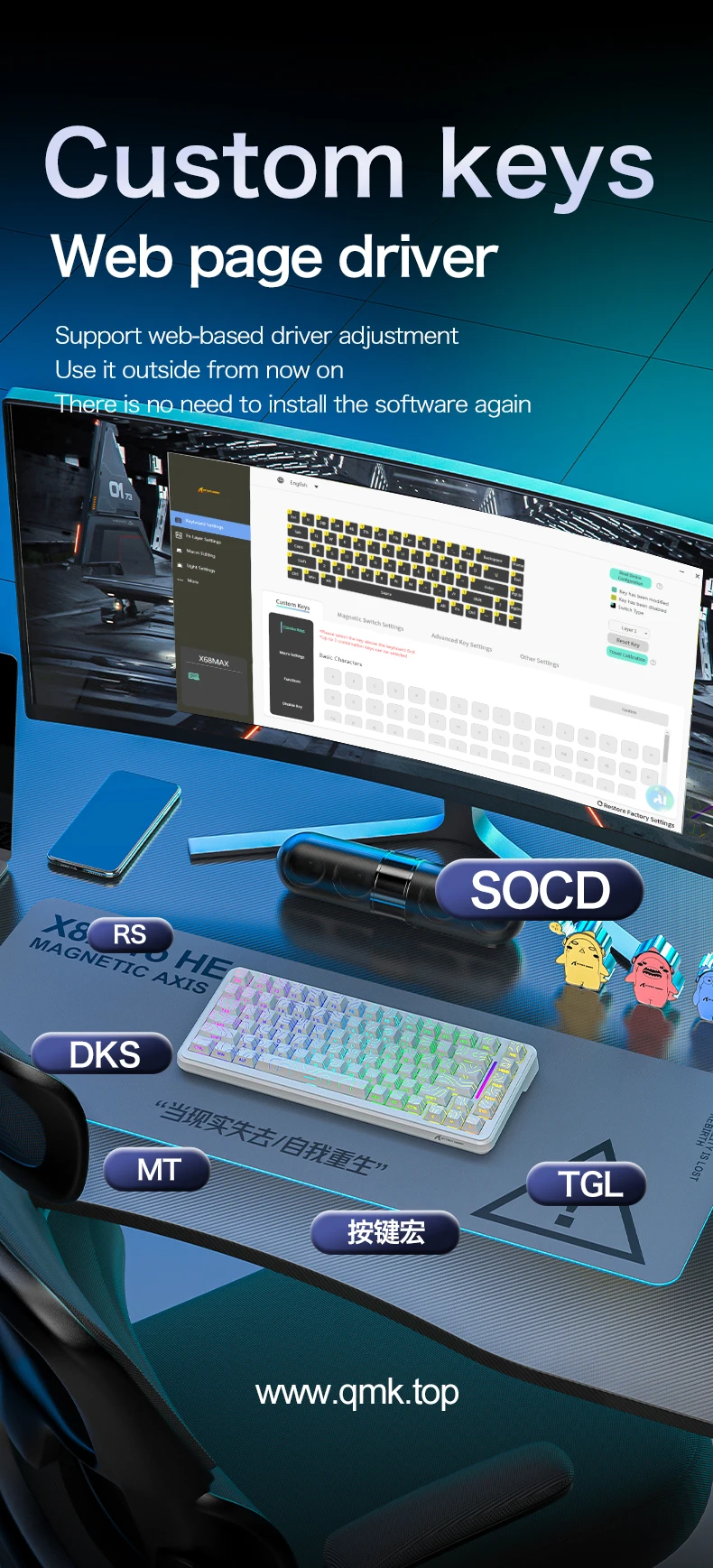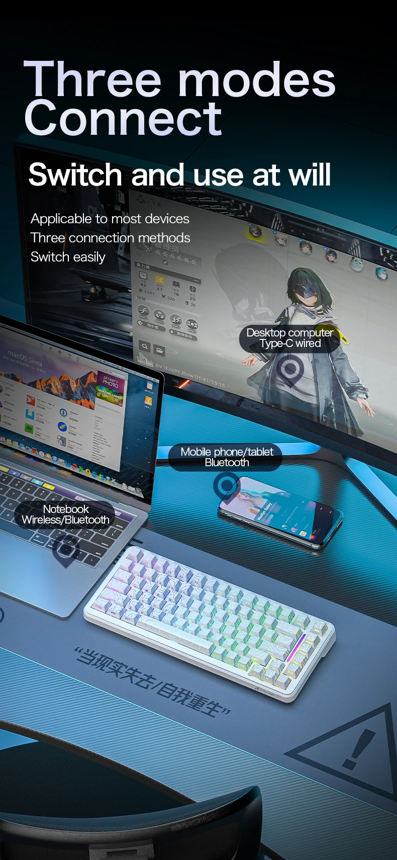 ✅ Innovación del eje magnético: Disparo 300% más rápido que los teclados mecánicos tradicionales
