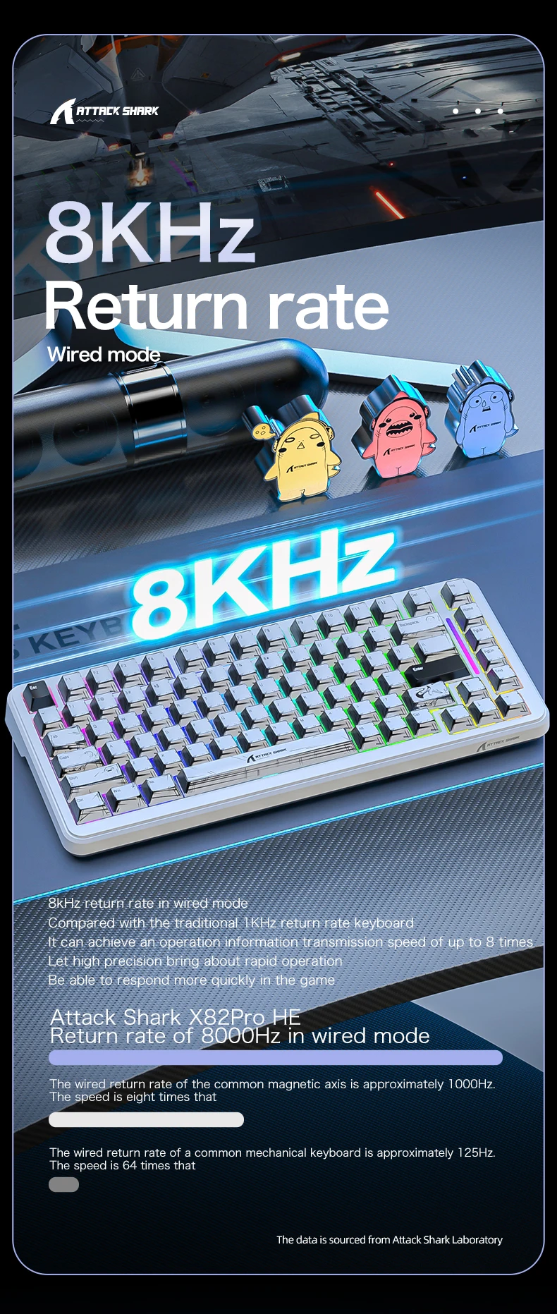Comprar ATTACK SHARK X82Pro HE teclado magnético inalámbrico 8K, PollingRGB, teclado mecánico para juegos de 0,01mm para PC/PS5/Mac