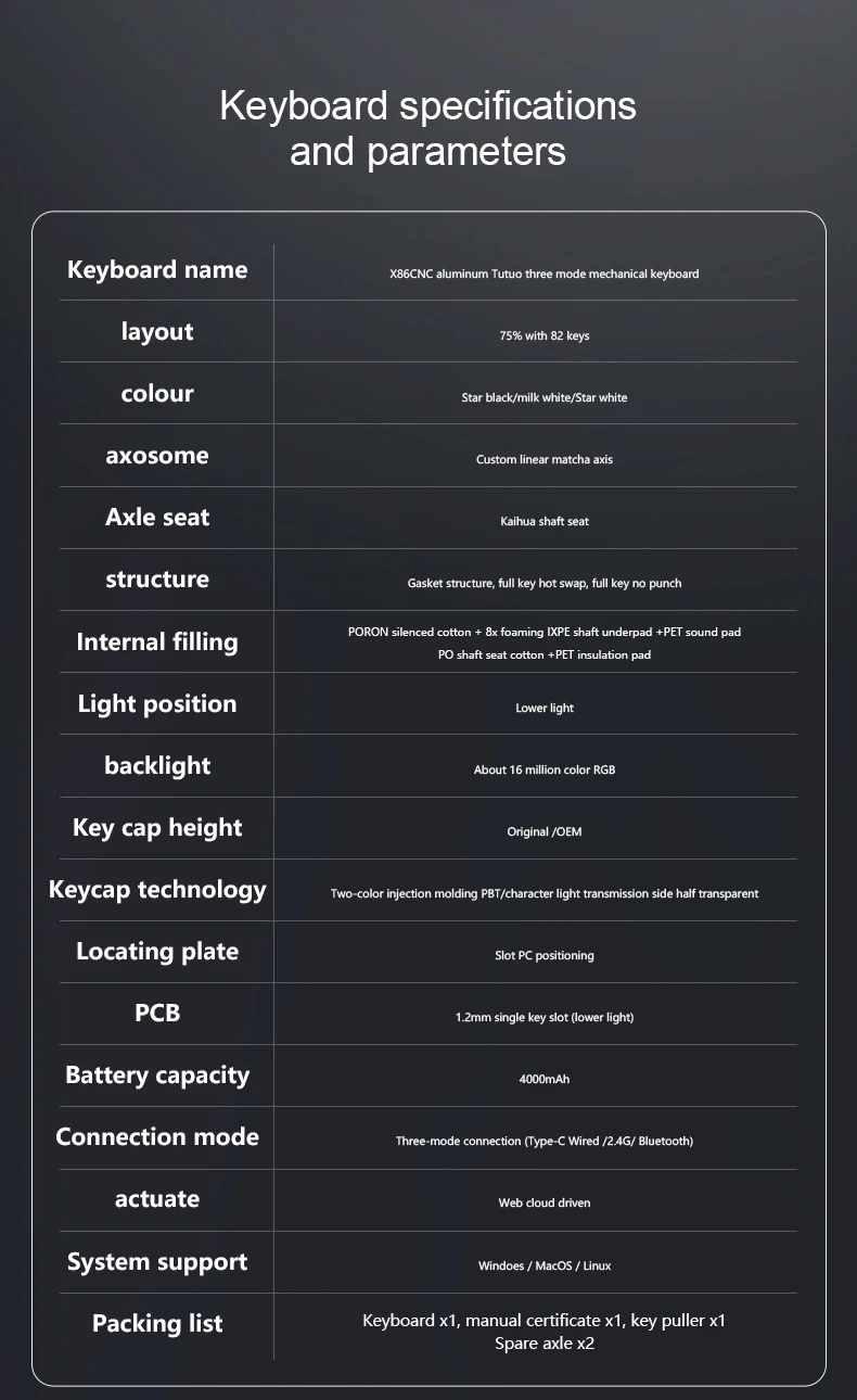 • 5 Types of Foams--PORON Foam/8x IXPE Switch Pad/PET Noise Cancellation Pad/PORON Dampening Pad/PET Pad