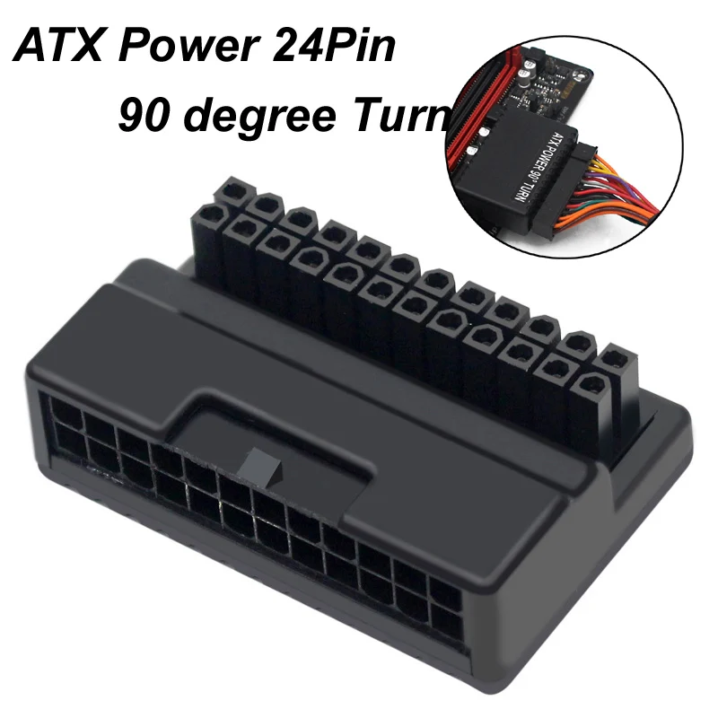 ATX 24 P 90 grados 24 pines a 24 pines adaptador de enchufe de alimentación placa base conectores de escritorio Modular para cables de fuente de alimentación