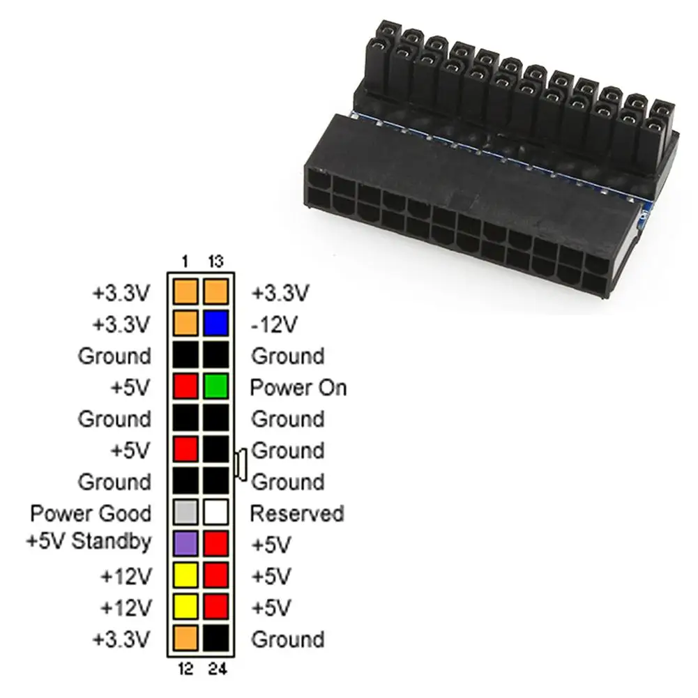 Adaptador de corriente ATX de 24 pines hembra a 24 pines macho, escritorio de 90 grados, placa base de PC, Conector de 24 pines para fuente de alimentación de Cable Características: Compatible con los requisitos de cableado de 24 Pines de cualquier placa base, que puede girar el cableado de 24 pines en 90 °. Salida de 90 °, es muy simple y conveniente enchufar el cable de alimentación.