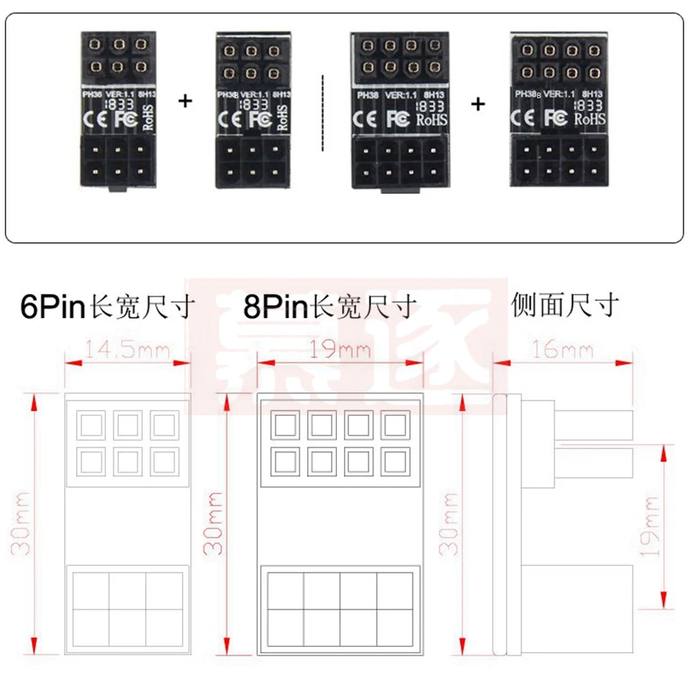 ATX 6pin / 8Pin Weibliche zu 6pin / 8pin Männlichen 180 Grad AngledPower Adapter für Desktops Grafikkarte Die adapter ist entworfen für ändern ATX 6pin / 8PIN kabel installation richtung Sie können installieren die 6pin / 8PIN power kabel von vertikale zu horizontale richtung mit diesem adapter Die wird lösen das NETZTEIL installation für die begrenzte höhe chassis Das paket umfassen: 1 pc adapter