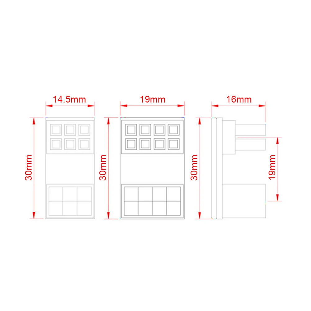 Adaptador ATX de 6 pines hembra a 6 pines macho de 8 pines a 8 pines en ángulo de 180 grados para tarjeta gráfica de escritorio Característica: 1. Con adhesivo en la parte posterior, reforzado a prueba de fuego, no conductor. 2. La fuente de alimentación de la tarjeta gráfica se gira 180 grados para embellecer la línea de alimentación de la tarjeta gráfica y reducir la altura del cable de alimentación 3. Carcasa ABS de plástico, todo cobre estañado, buena conductividad. 4. Clasificación de fuego UL 94V-0, antienvejecimiento, fácil de enchufar, diseño de carcasa trasera de ABS 5. Utiliza placa de circuito de cuatro capas, lámina de cobre gruesa y gruesa, para garantizar la estabilidad de la tarjeta gráfica de alta potencia, funcionando y usando