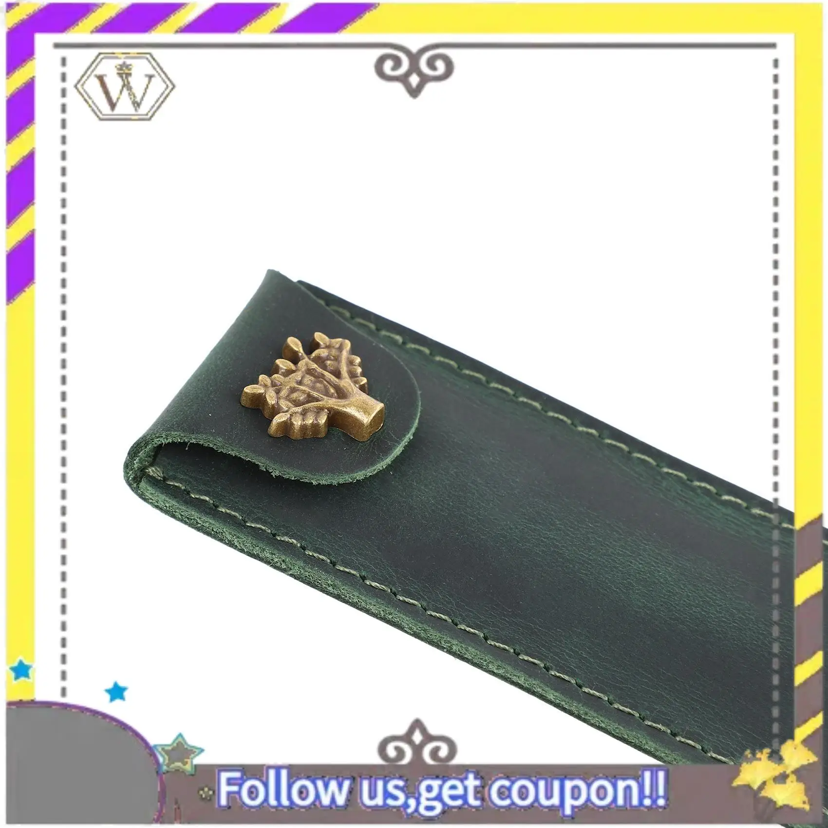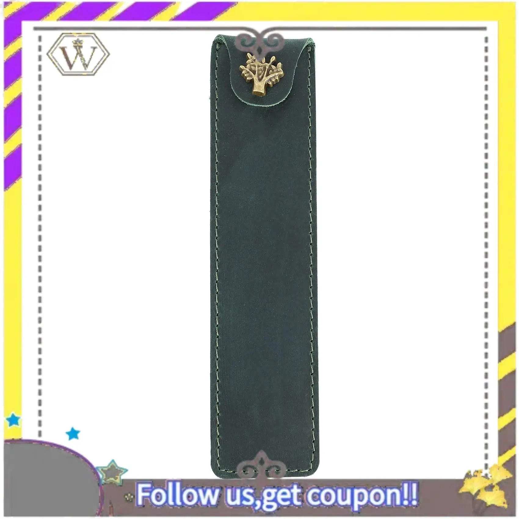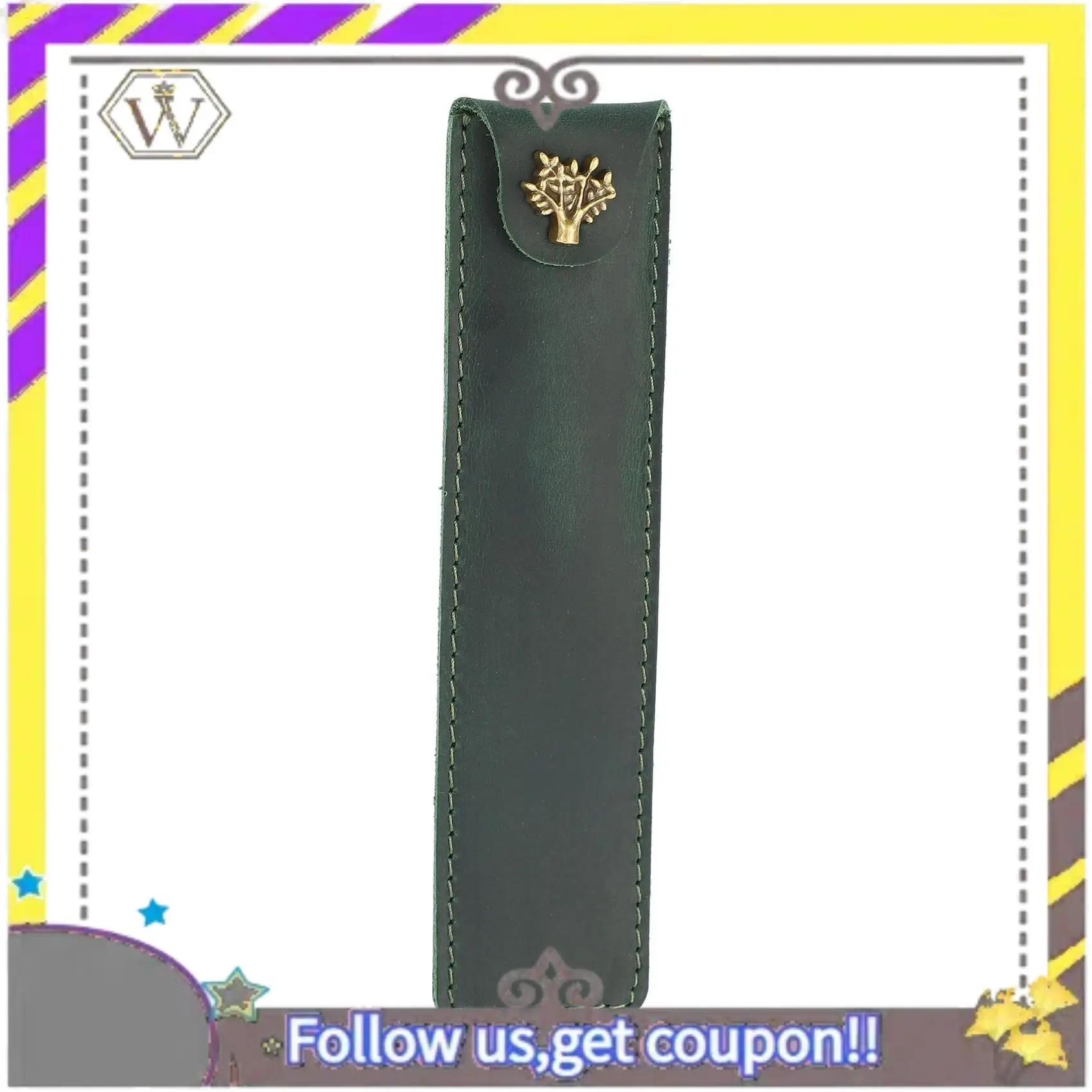 AU33-2 uds estuche para bolígrafos de cuero genuino estuche para lápices con botón a presión para bolígrafo estilográfica Rollerball, verde y marrón 2 estuches para lápices: 1 verde y 1 marrón.
