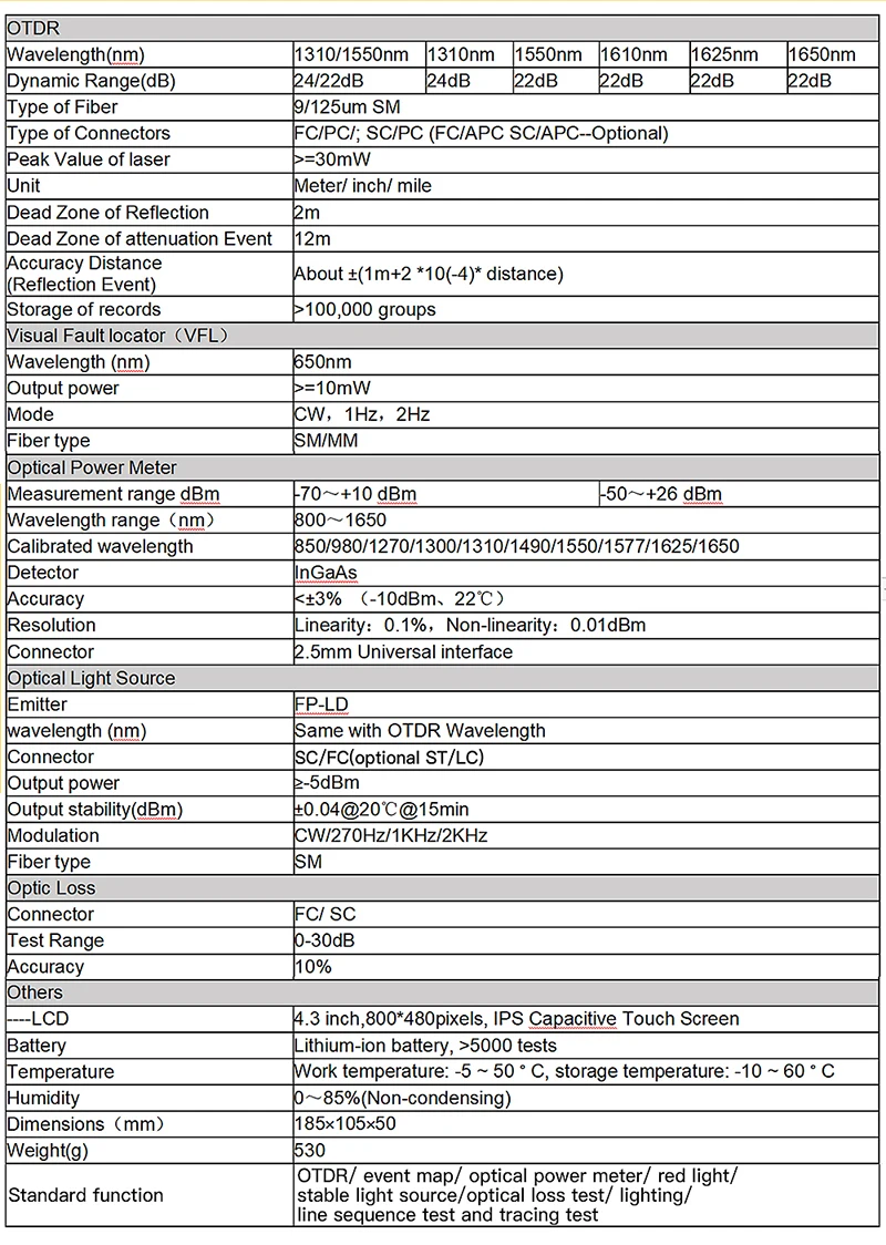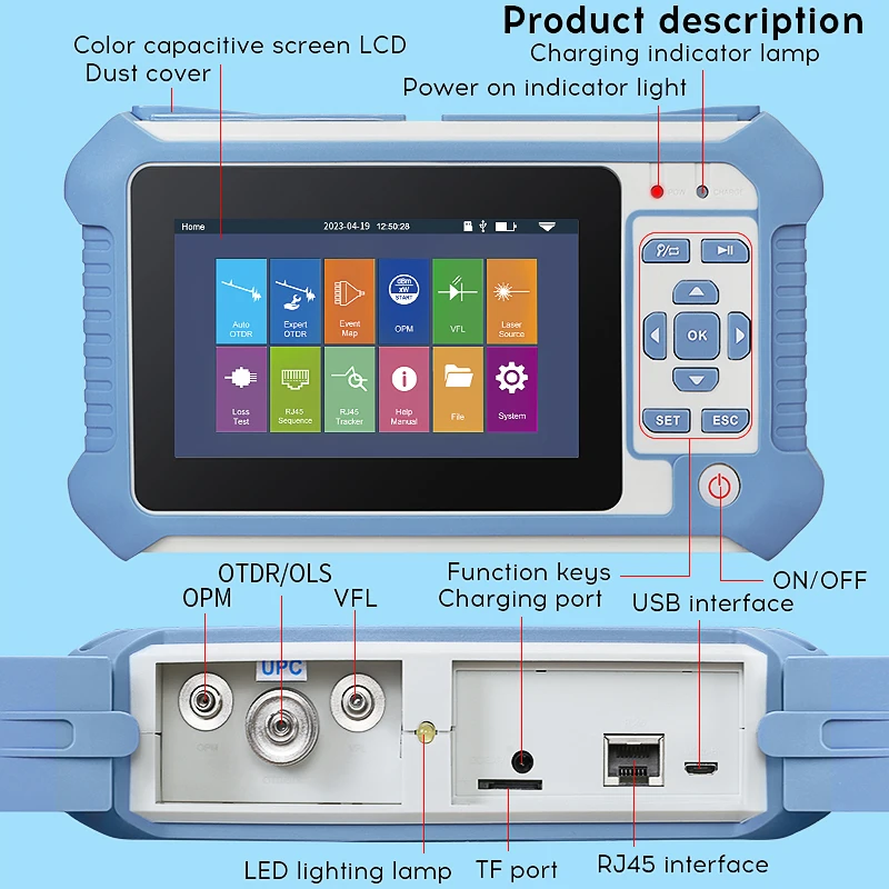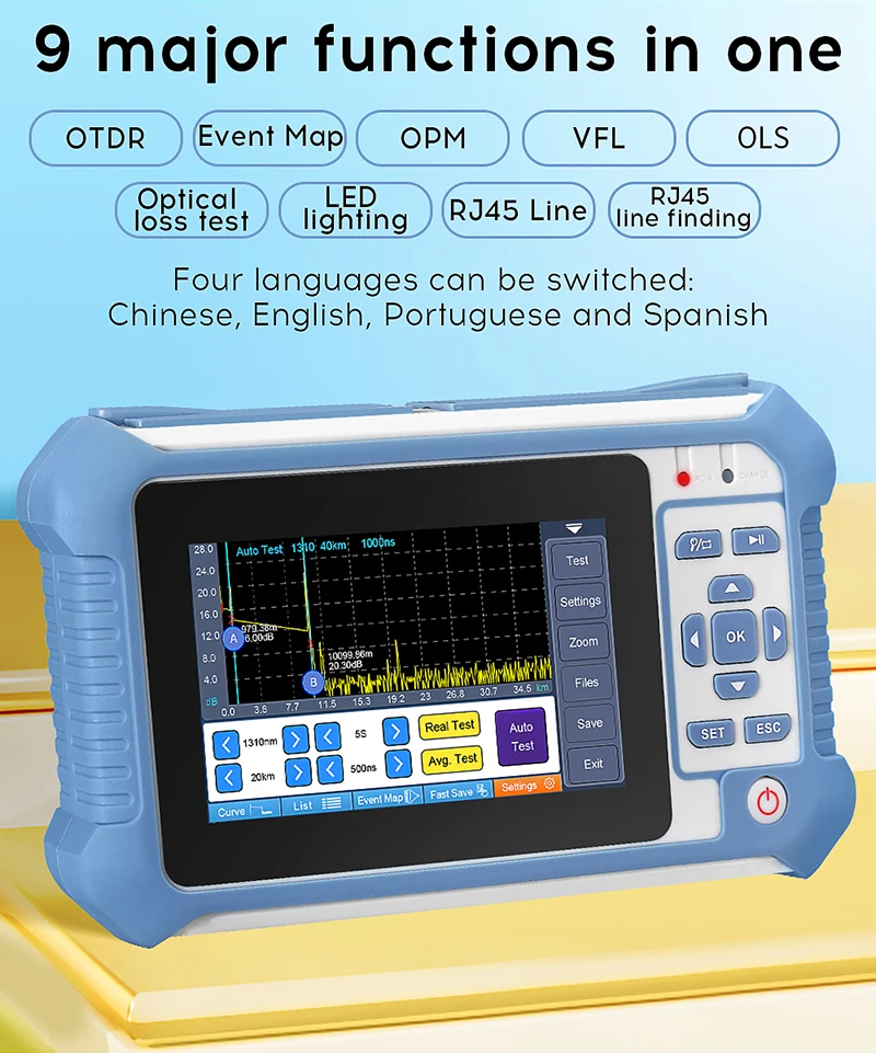 Comprar AUA-reflectómetro de dominio de tiempo óptico multifuncional OTDR, prueba de fibra activa, 513/501/516/562/565U/A, VFL OPM OLS LED integrado