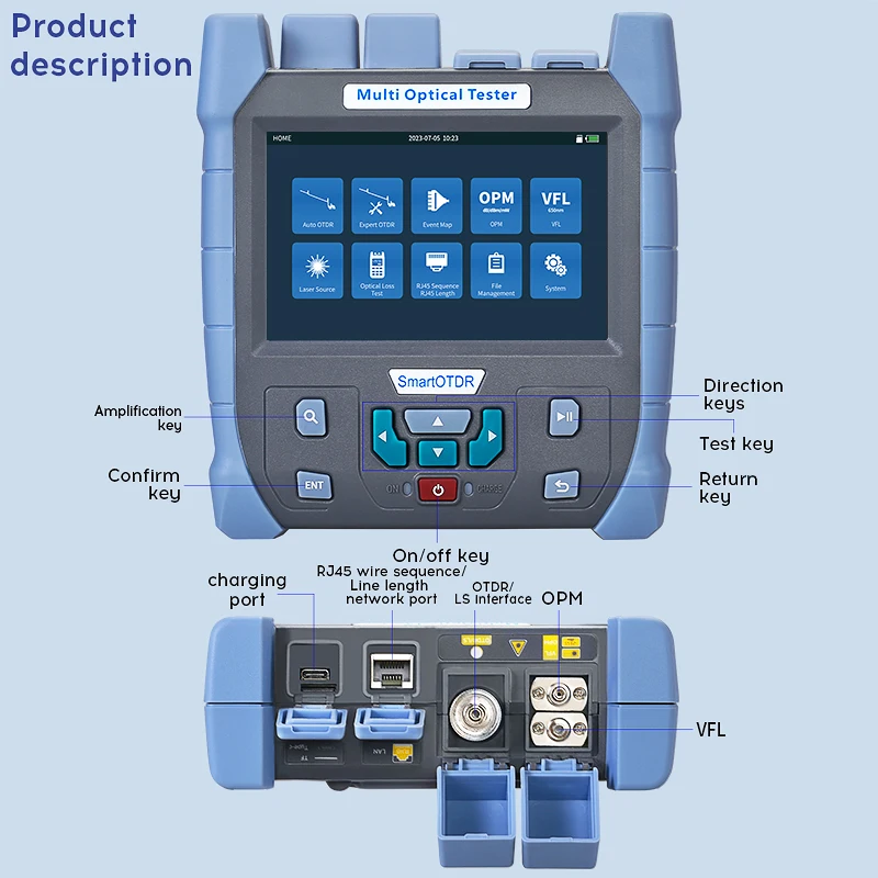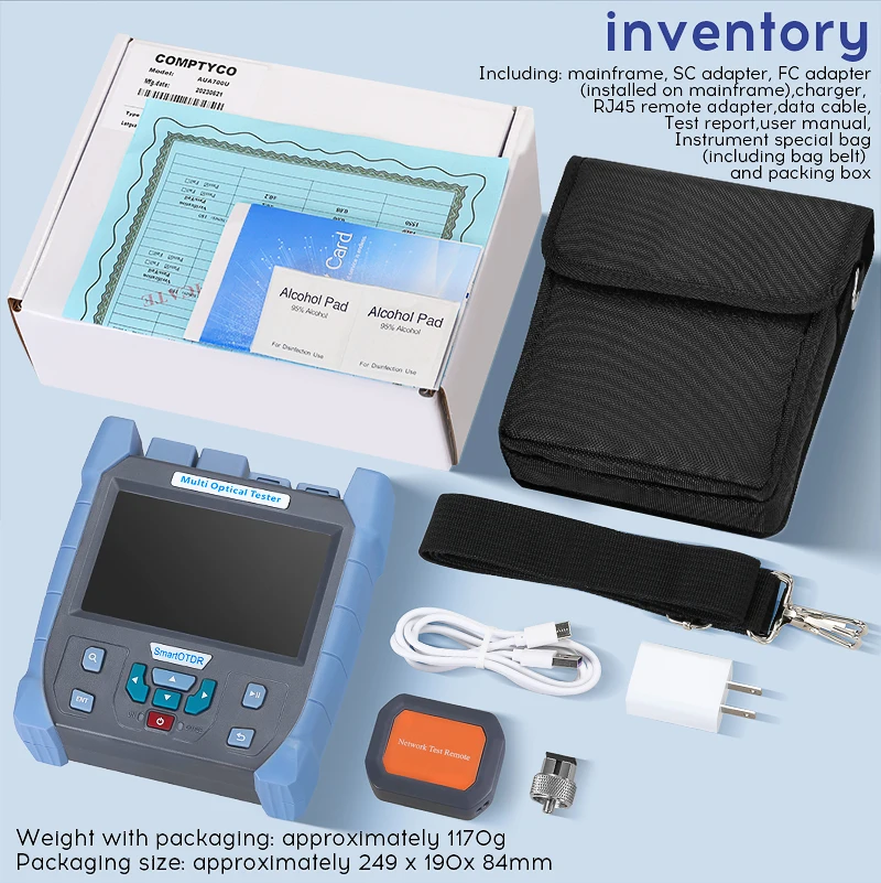 Comprar AUA715U/715A OTDR 100Km 24dB 1550nm probador de fibra óptica pantalla táctil reflectómetro de dominio de tiempo óptico con OPM/VFL/OLS/MAPA DE EVENTOS