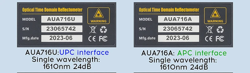 AUA716U/716A probador de fibra de reflectómetro de dominio de tiempo óptico multifuncional, 100KM, 24dB, 1610nm, OTDR con OPM, VFL, OLS, mapa de eventos