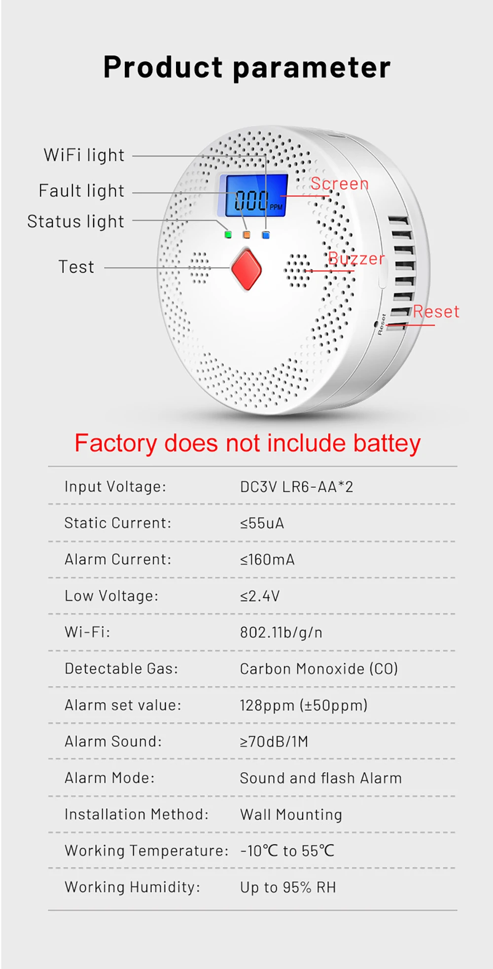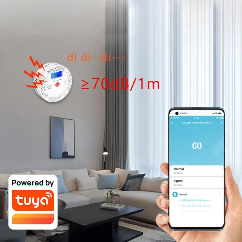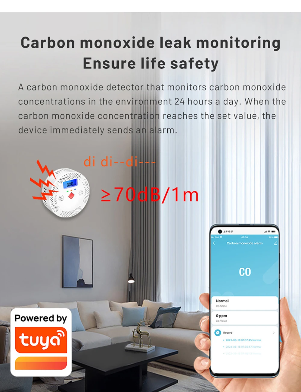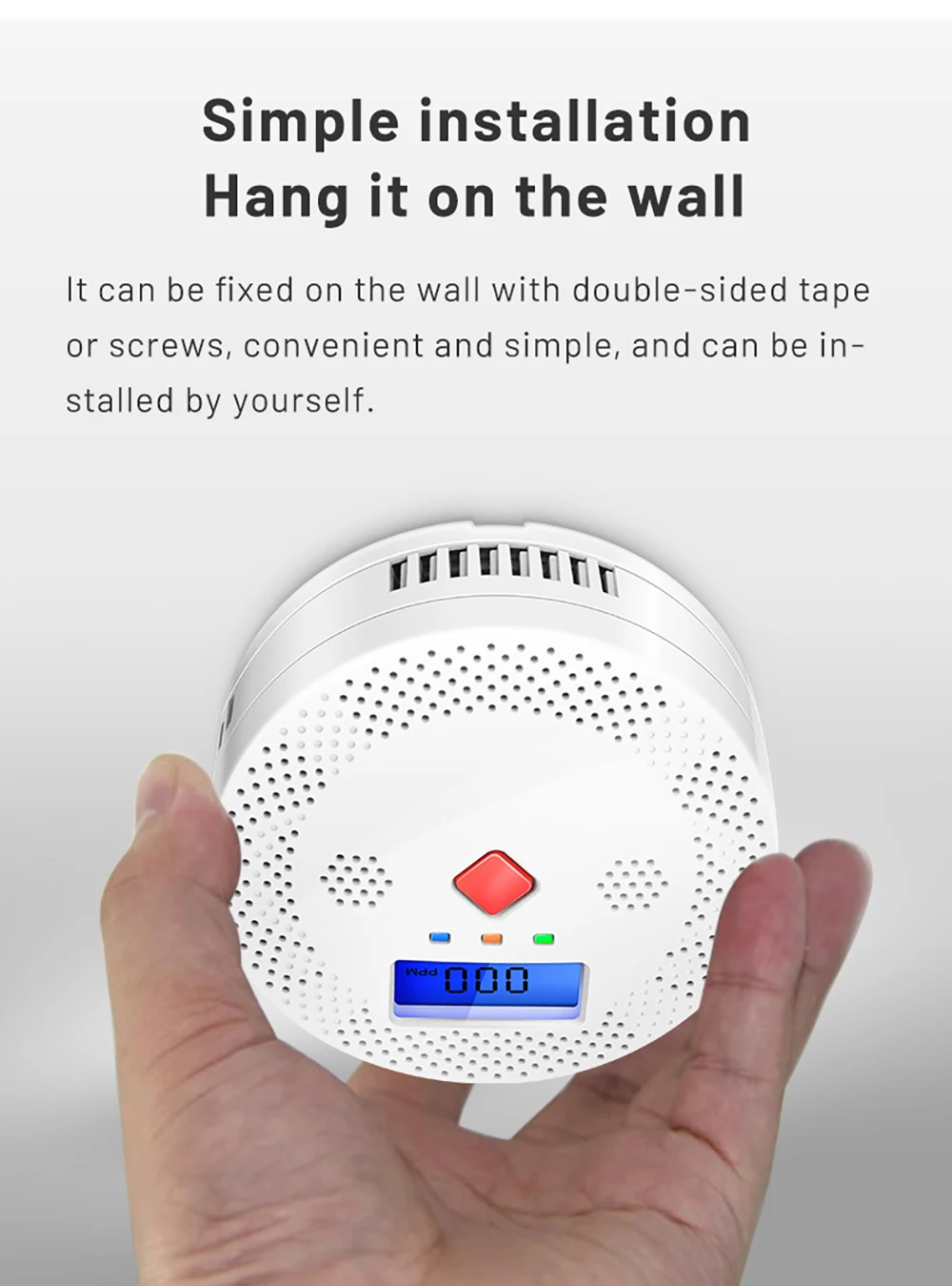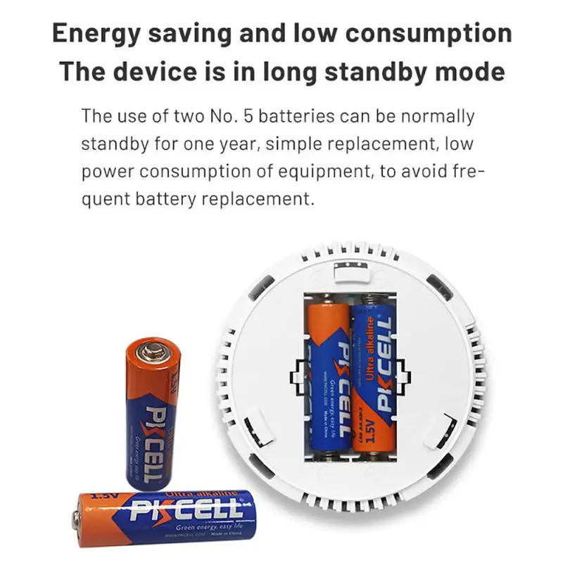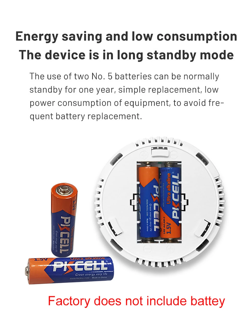 2. Detección de humo de Alta sensibilidad: cuando se produce un incendio, El sensor detectará el humo con sensibilidad, enviará una alarma y luego enviará el aviso a su teléfono inteligente para proteger a las personas y la propiedad. Algoritmo inteligente de humo exclusivo tiene alta sensibilidad, sin falsas alarmas y fuerte capacidad antiinterferencia.