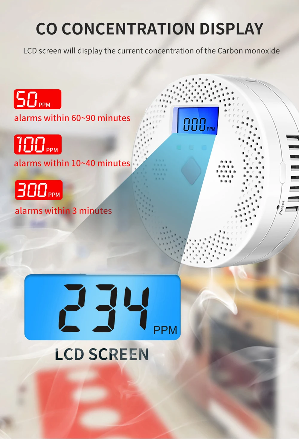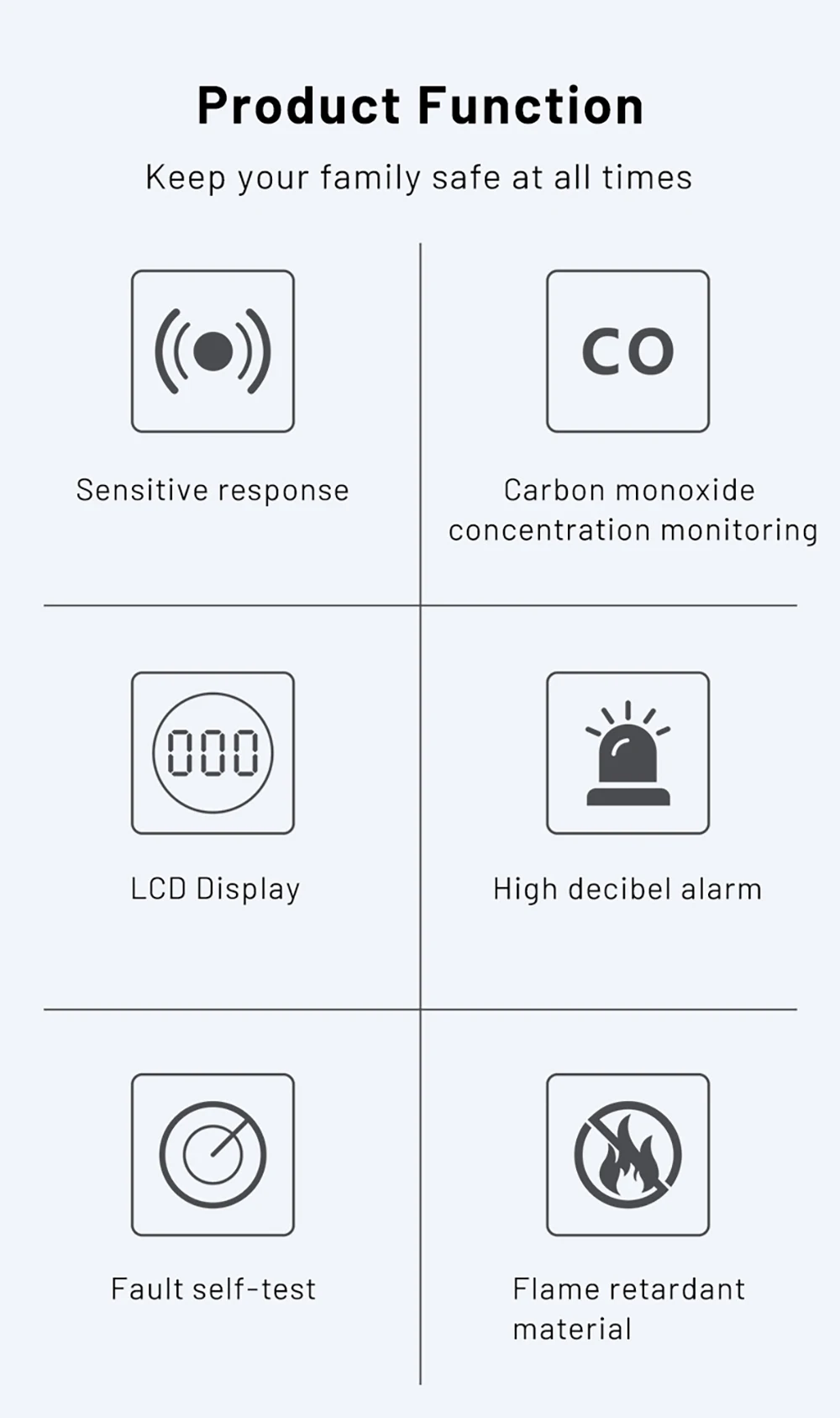 5. Pantalla LCD digital única para mostrar bajos niveles de CO