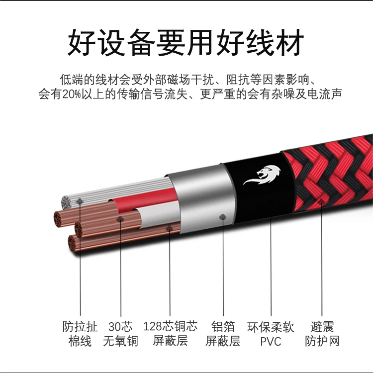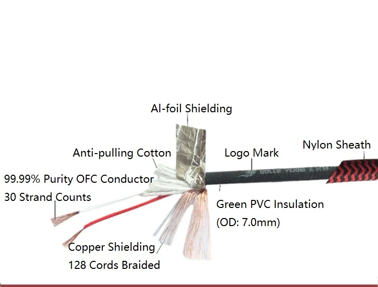 2. Using high-purity oxygen free copper (OFC)conductor high shielding core isolation audio cable.