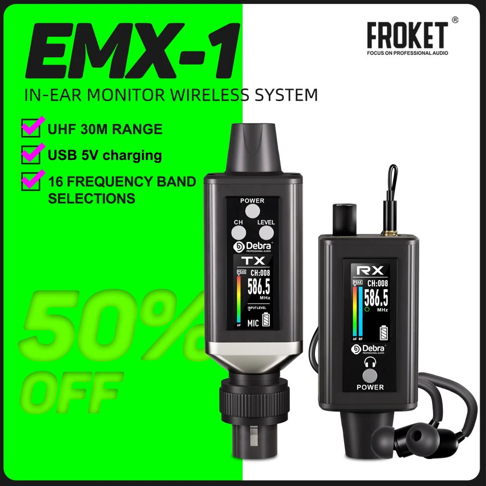 Comprar Audio UHF IEM EMX-1 sistema de monitoreo inalámbrico portátil recargable 16 pantalla de frecuencia ajustable 2025 nuevo