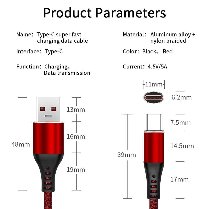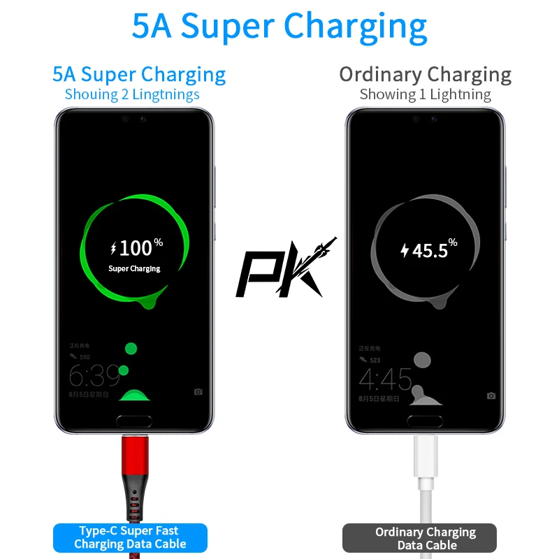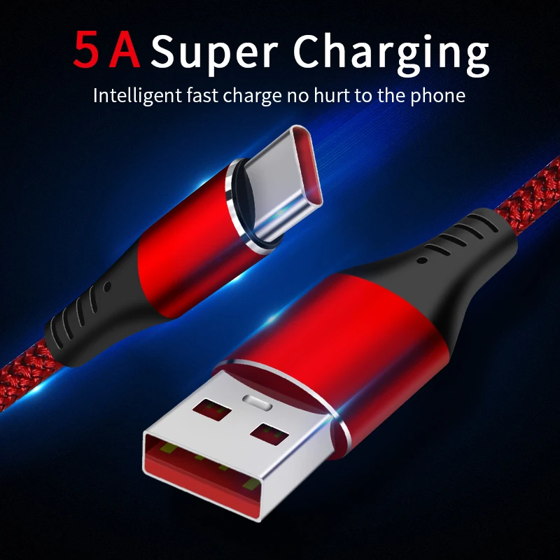 Comprar AUFU-Cable de datos USB tipo C de carga rápida 5A para Xiaomi 11 Pro, Huawei, QC 3,0, Cable de carga rápida, Cable de teléfono para Samsung