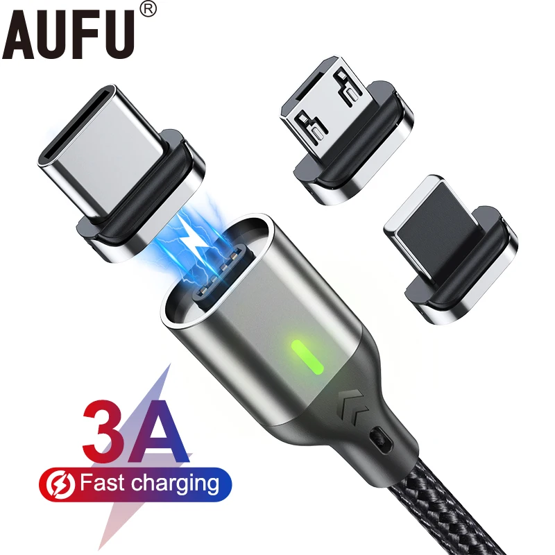 Comprar AUFU-Cable magnético de carga rápida 3A, Cable USB tipo C, Micro USB, Cable de carga de datos, teléfono móvil para iPhone y Xiaomi