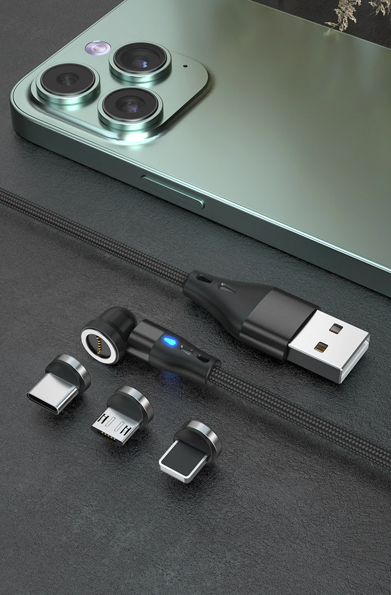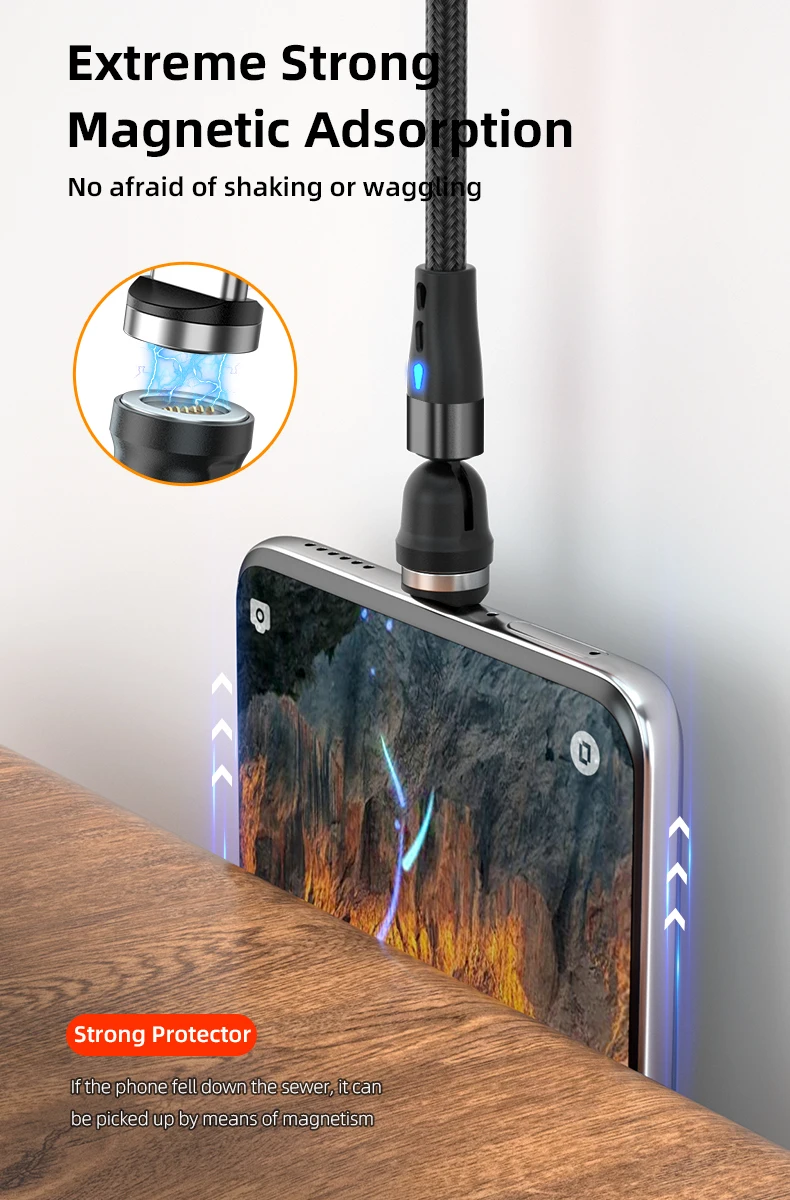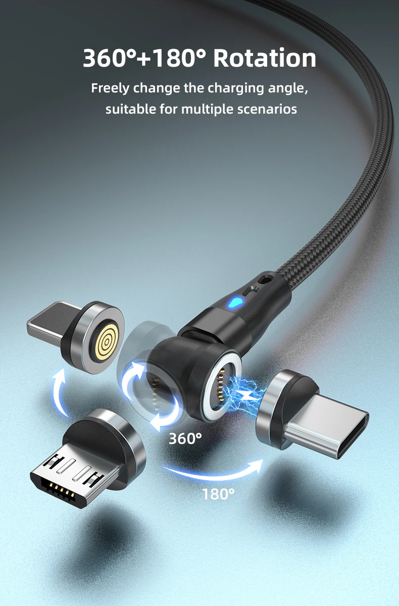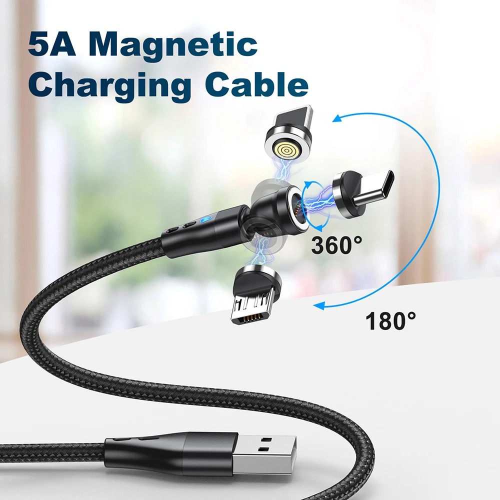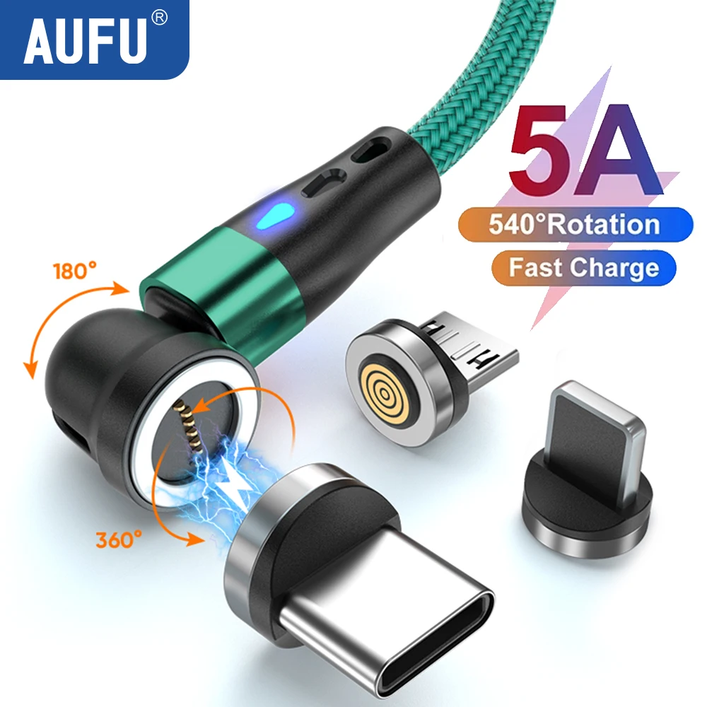 Comprar AUFU-Cable magnético de carga rápida 5A, Micro USB tipo C, giratorio 540, para iPhone 14, Samsung, Xiaomi