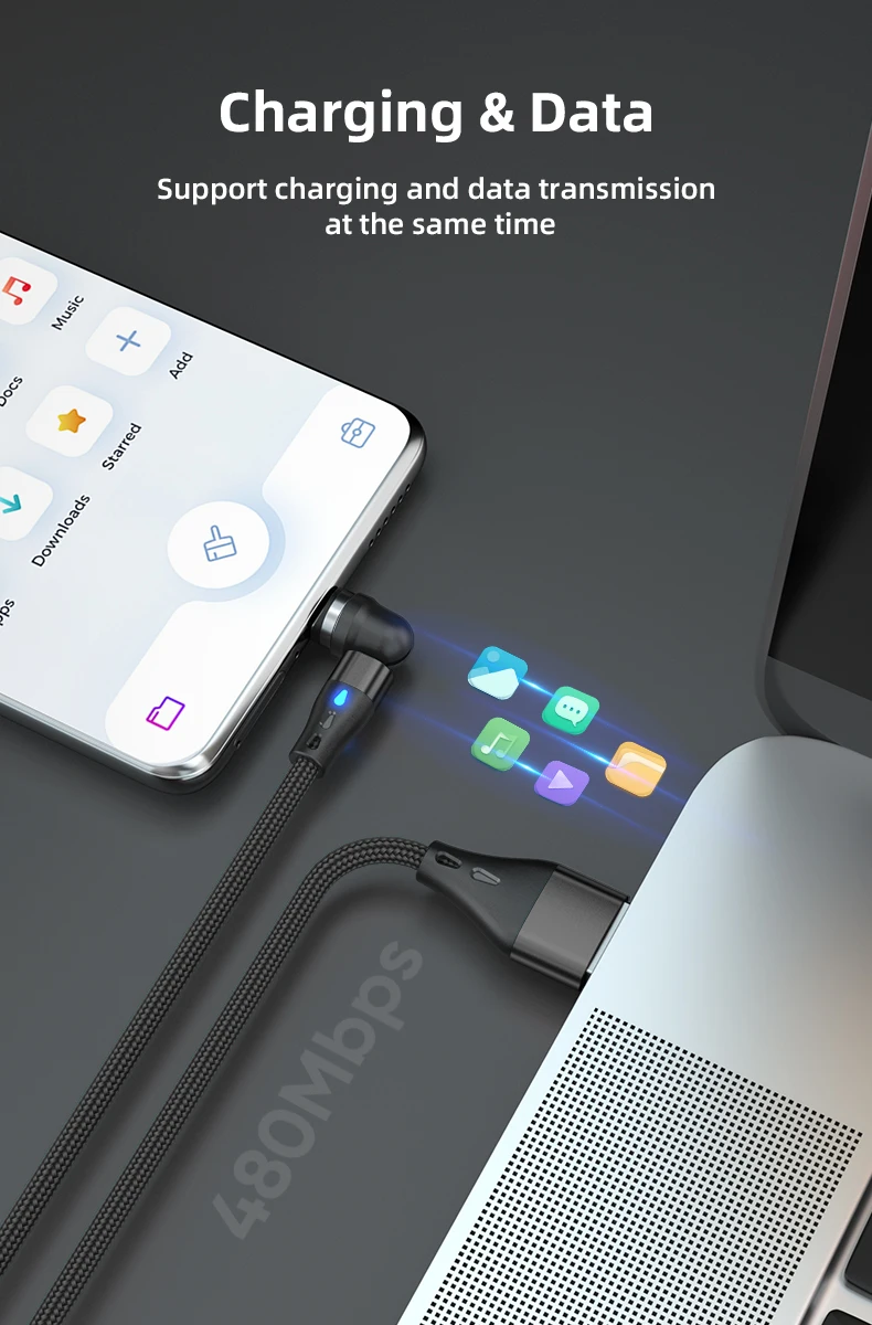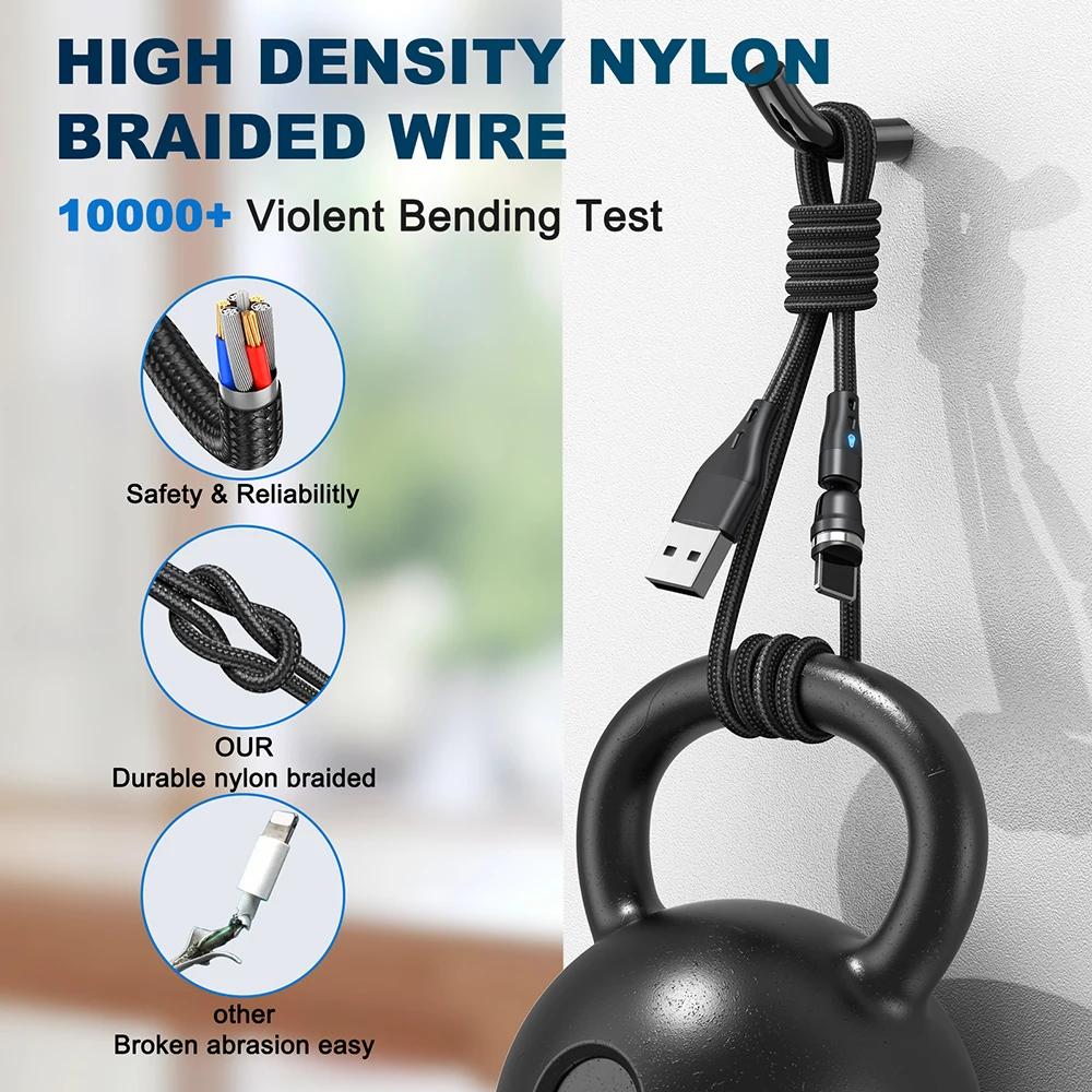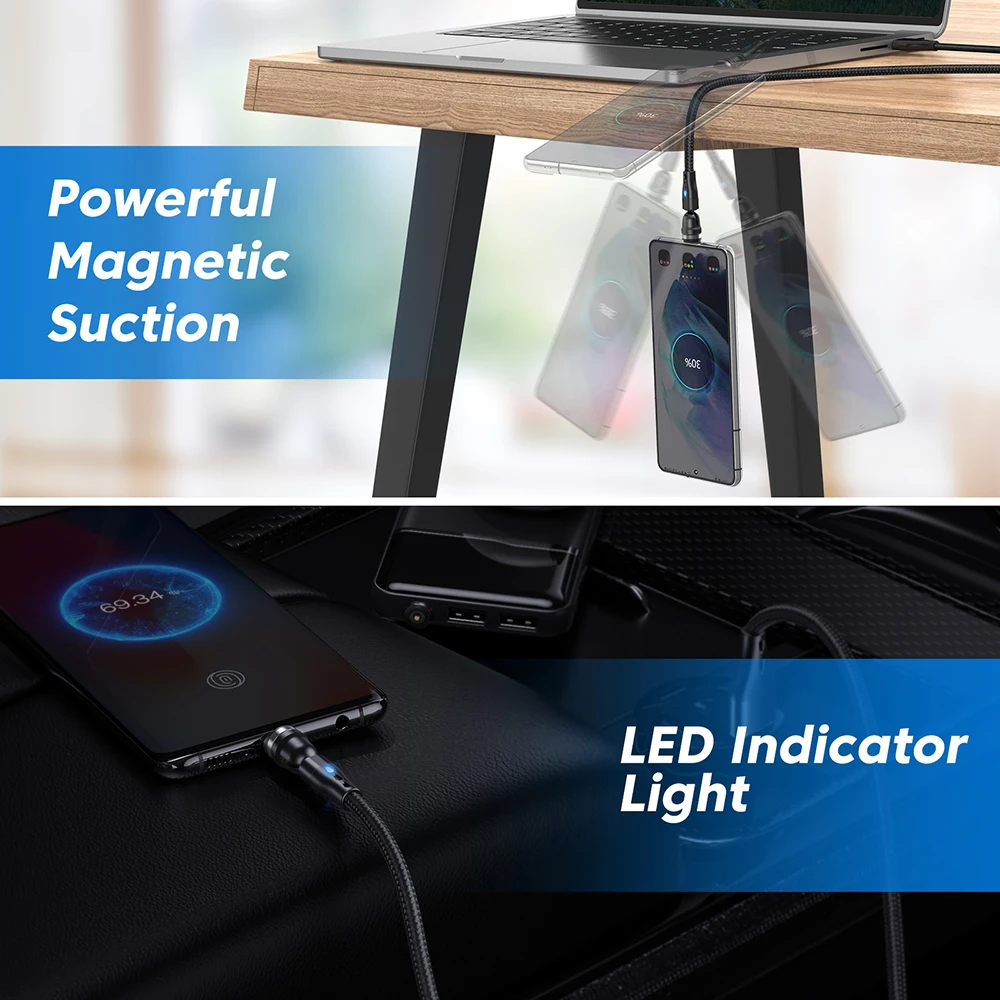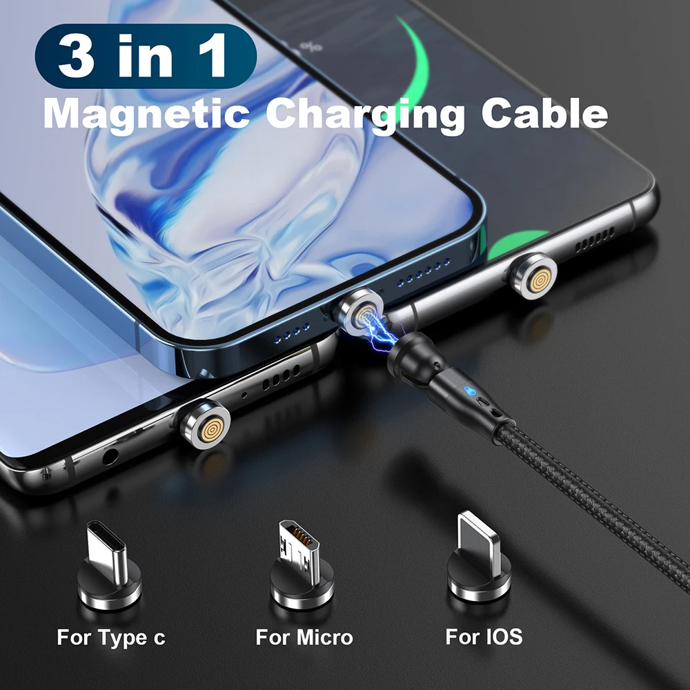 Comprar AUFU-Cable magnético de carga rápida 5A, Micro USB tipo C, giratorio 540, para iPhone 14, Samsung, Xiaomi