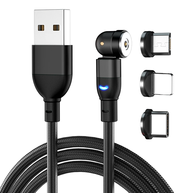 Cable magnético giratorio 540, cargador magnético, Cable Micro USB tipo C, Cable de teléfono móvil para iPhone Xiaomi