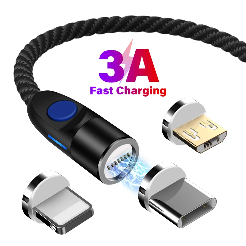 Cable magnético AUFU Micro USB tipo C para iPhone12 Xs Max XR Cable 1M 2M 3A Cable de carga rápida tipo C Cable cargador magnético