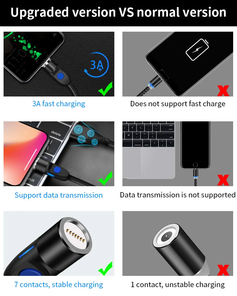 Comprar AUFU-Cable magnético Micro USB tipo C para iPhone 12, Xs Max, XR, 1M, 2M, 3A, Cable de carga rápida, Cable cargador magnético tipo C