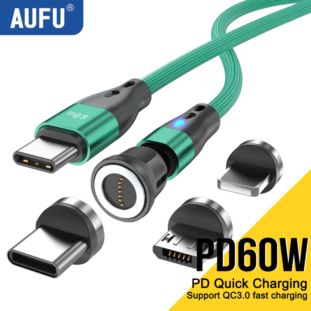 Comprar AUFU-Cable magnético USB tipo C de carga rápida, Cable de datos para iPhone, Macbook Pro, Samsung, Xiaomi, Huawei, 60W