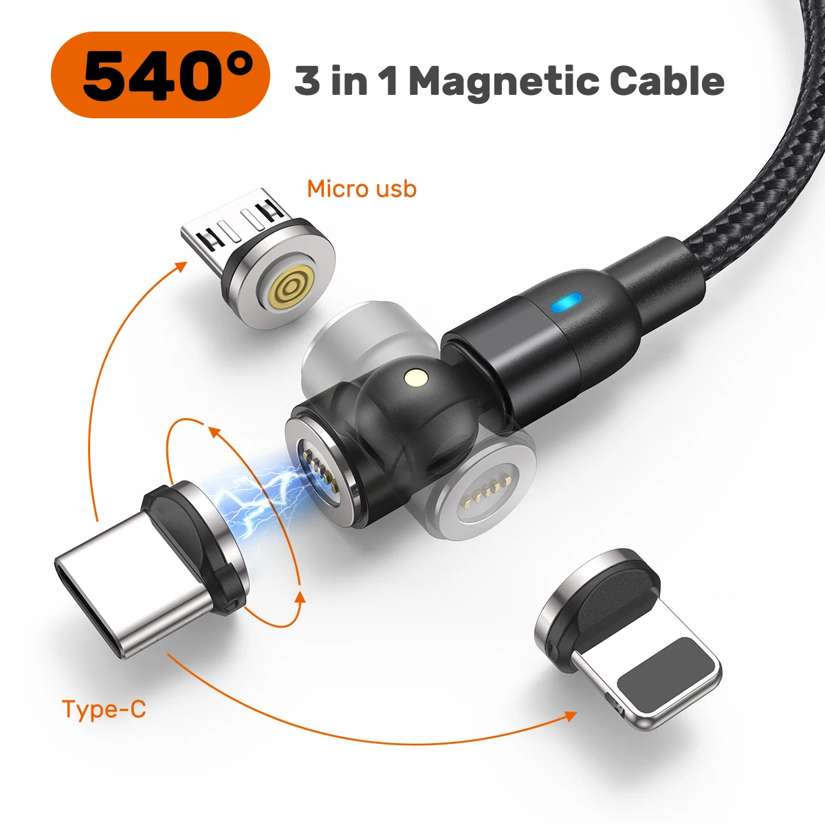 Diseño magnético giratorio de 360 ° + 180 °Forma de L de 180 ° y diseño de cabeza magnética giratoria de 360 °, tiene todas las funciones del cable magnético recto y en forma de L de 90 grados, que es más conveniente para jugar.