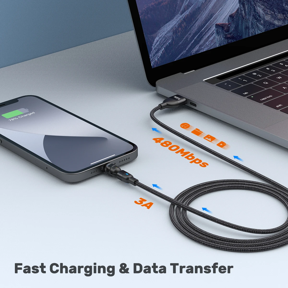 Carga rápida y transmisión de datosVelocidad de transferencia de hasta 480Mbps, carga rápida 3A, transferencia de datos y carga de energía 2 en 1.Nota: La carga rápida también solicita que su teléfono y el adaptador de cargador admitan la carga rápida. (No para iPhone)
