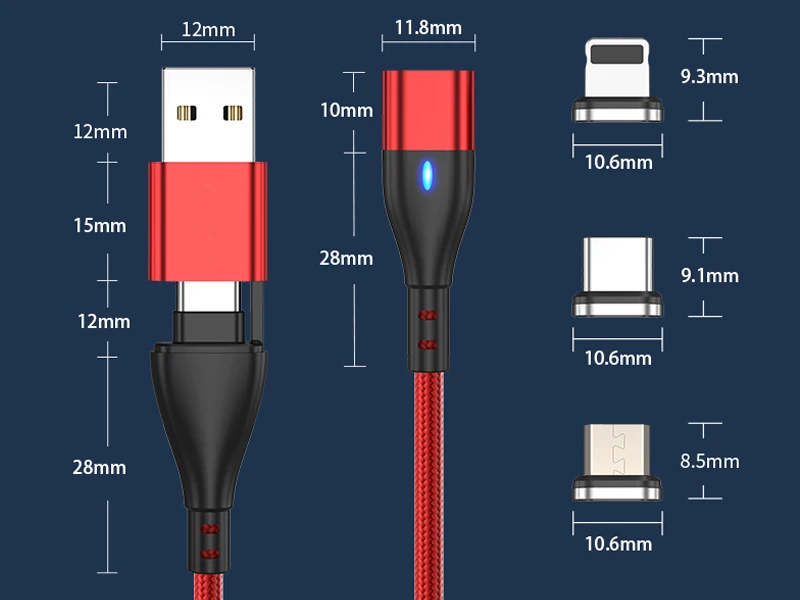 Conectores: 3 en 1 tipo C, Micro USB y para conectores IOS, seleccione el tipo correcto mientras realiza el pedido.