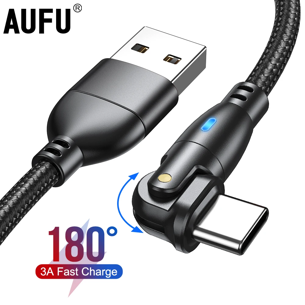 Comprar AUFU-Cable USB tipo C de carga rápida 3A, Cable de datos para cargador de USB-C para Samsung s21, s20, xiaomi Oneplus Poco, Cable de 180 grados