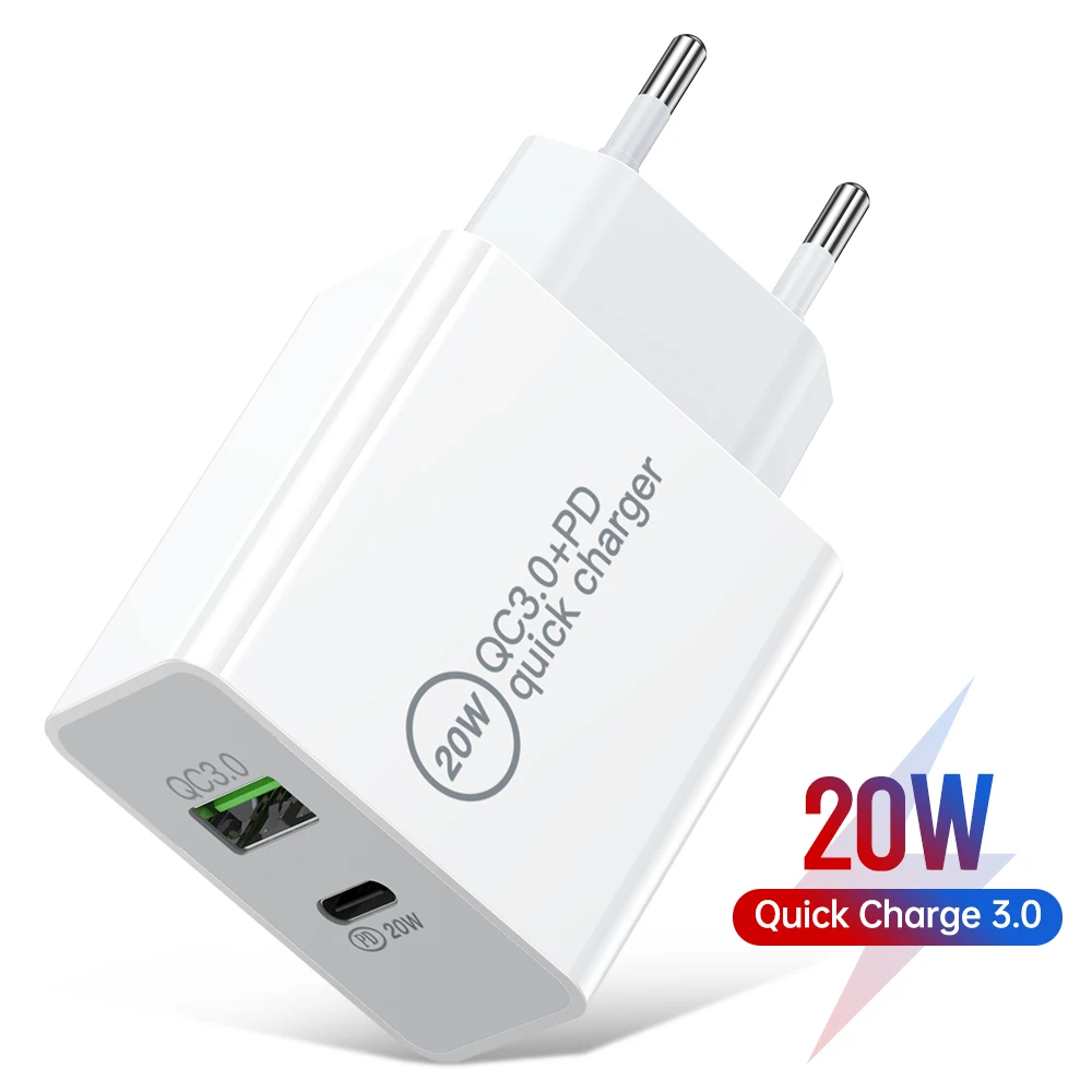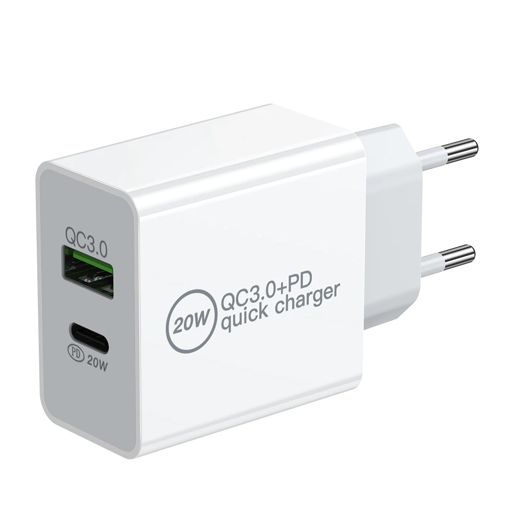 PD20W 18W EU US USB cargador tipo c usb adaptador de enchufe de pared dos puertos de viaje QC3.0 cargadores de teléfono móvil de carga rápida