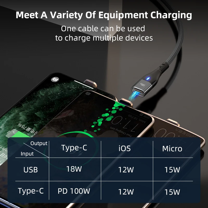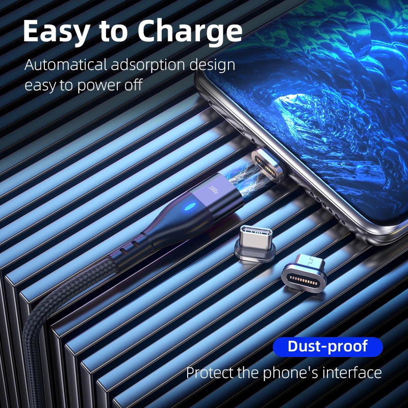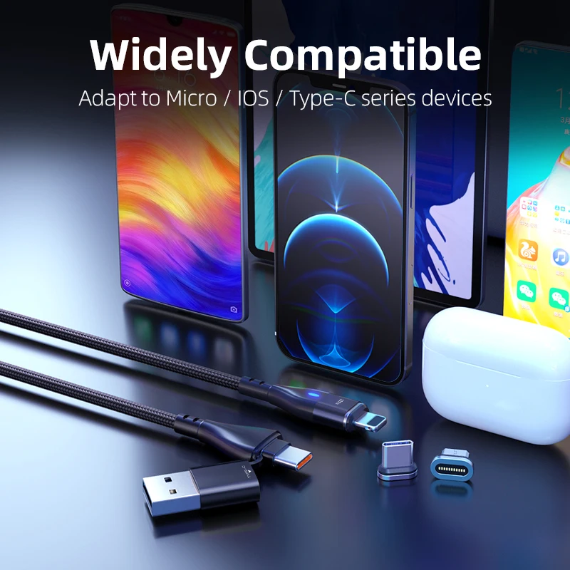 AUFU PD 100W 3 in 1 USB Type C Cable For iPhone 12 Mini 11 Pro XR XS Max Magnetic Charger Cable Fast Charging Micro USB Cord