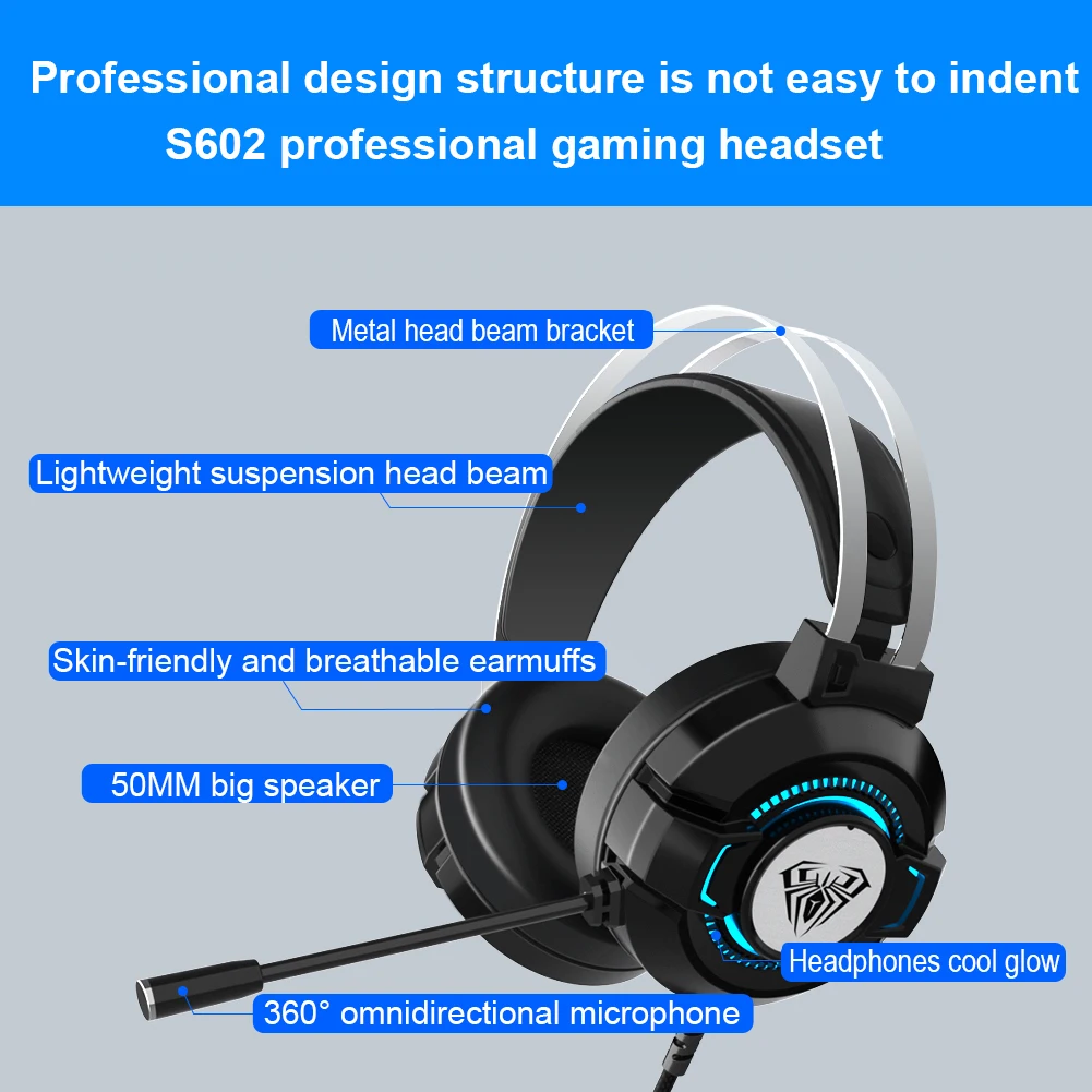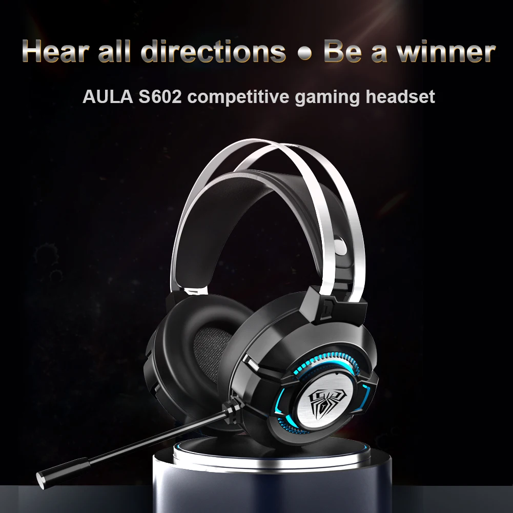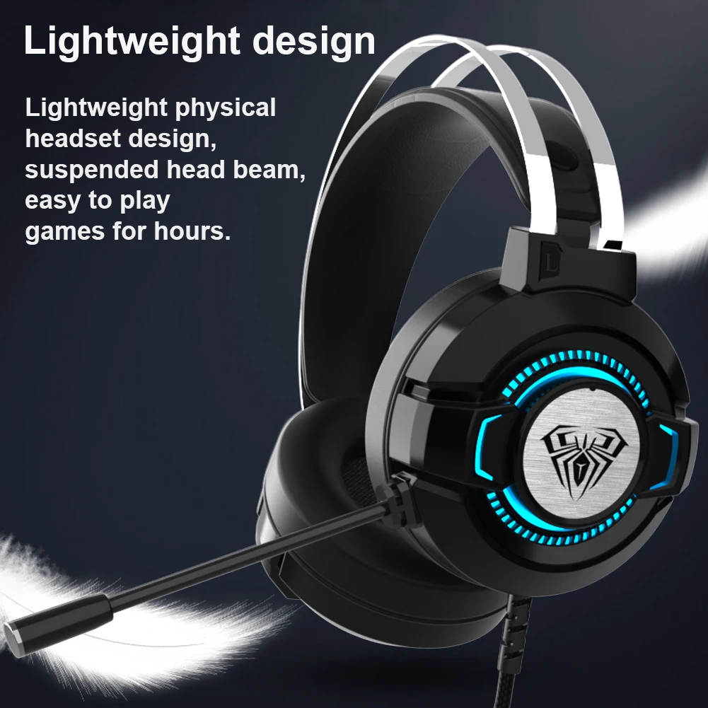 Comprar AULA-auriculares S602 con cable para videojuegos, audífonos estéreo de graves con luz RGB, con cancelación de ruido y micrófono para ordenador de escritorio y PC