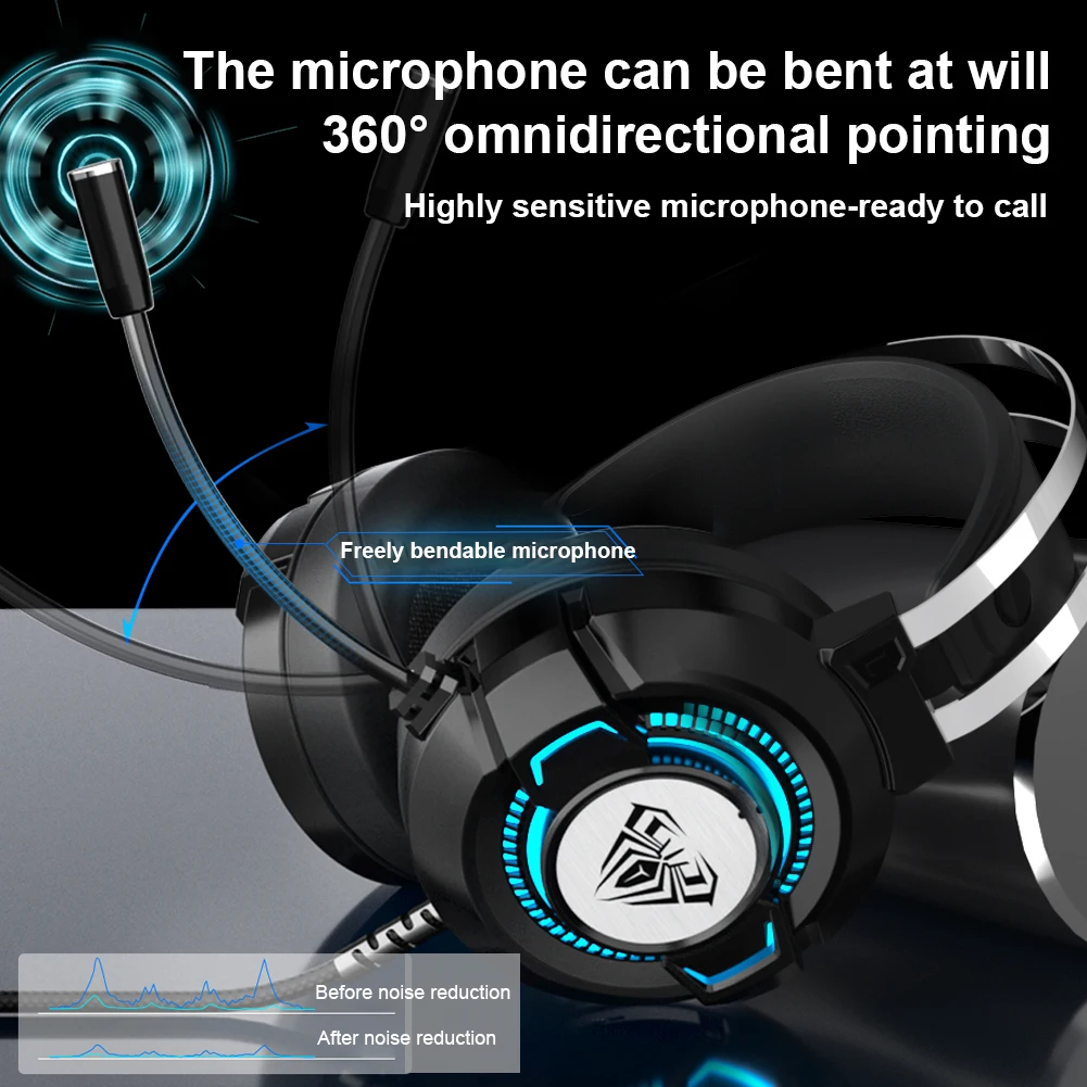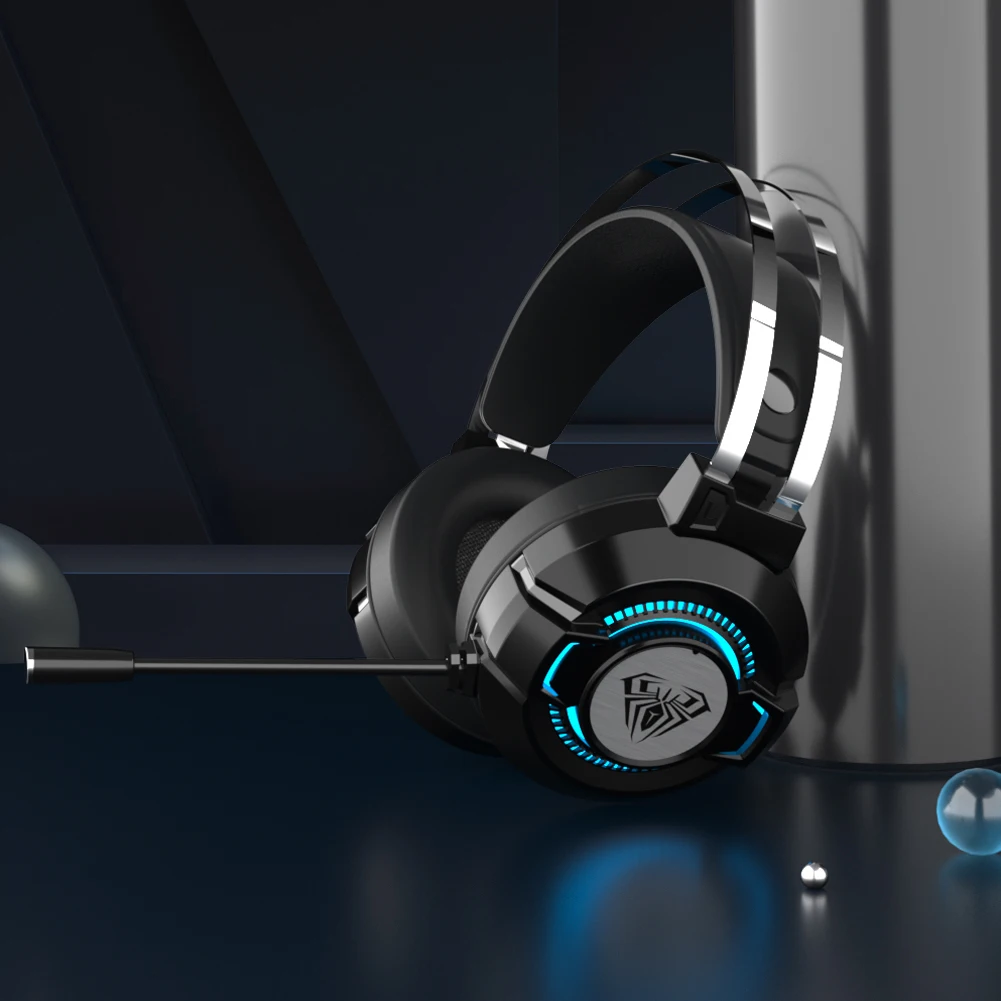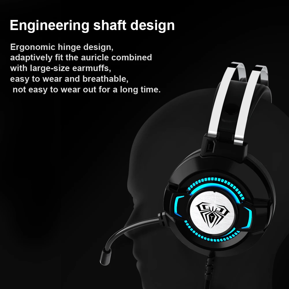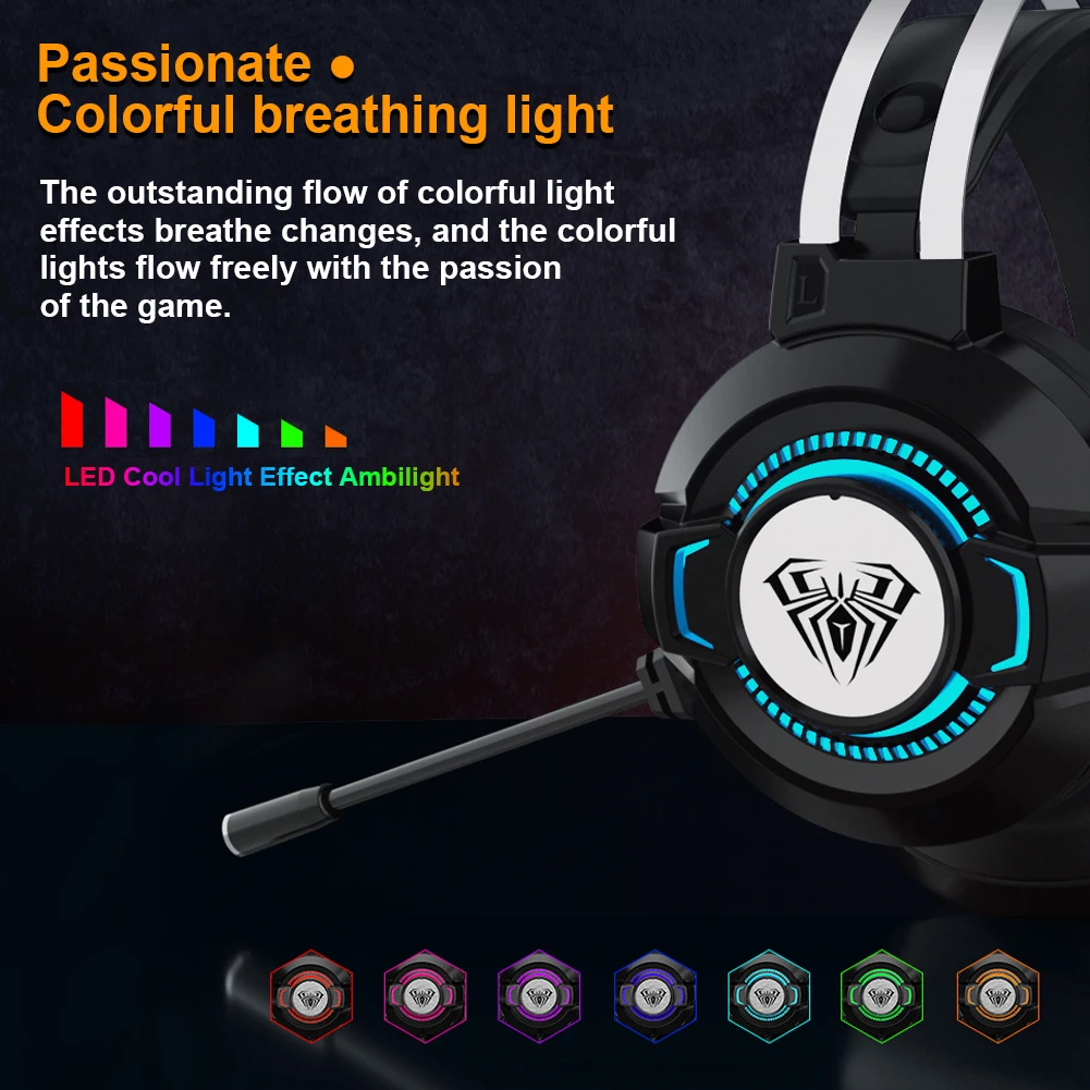 Comprar AULA-auriculares S602 con cable para videojuegos, audífonos estéreo de graves con luz RGB, con cancelación de ruido y micrófono para ordenador de escritorio y PC